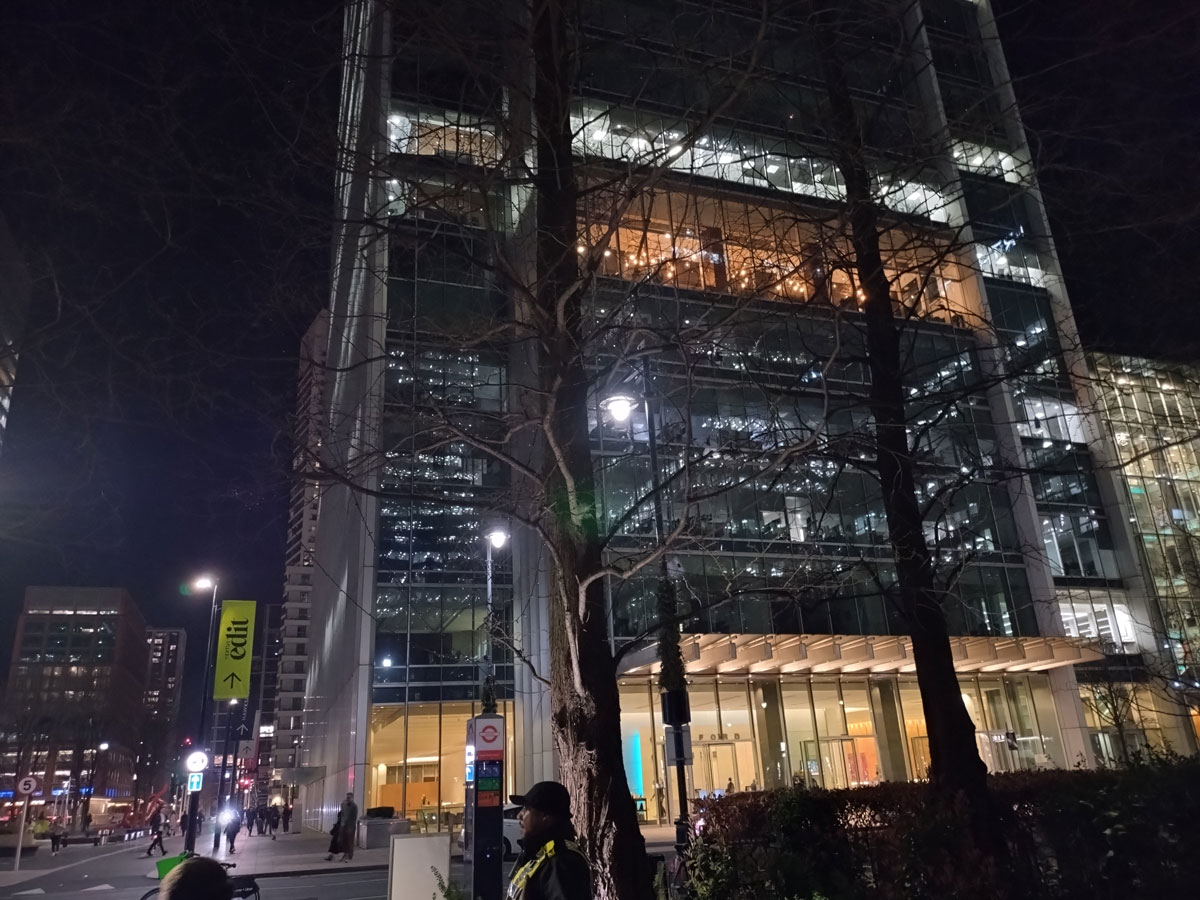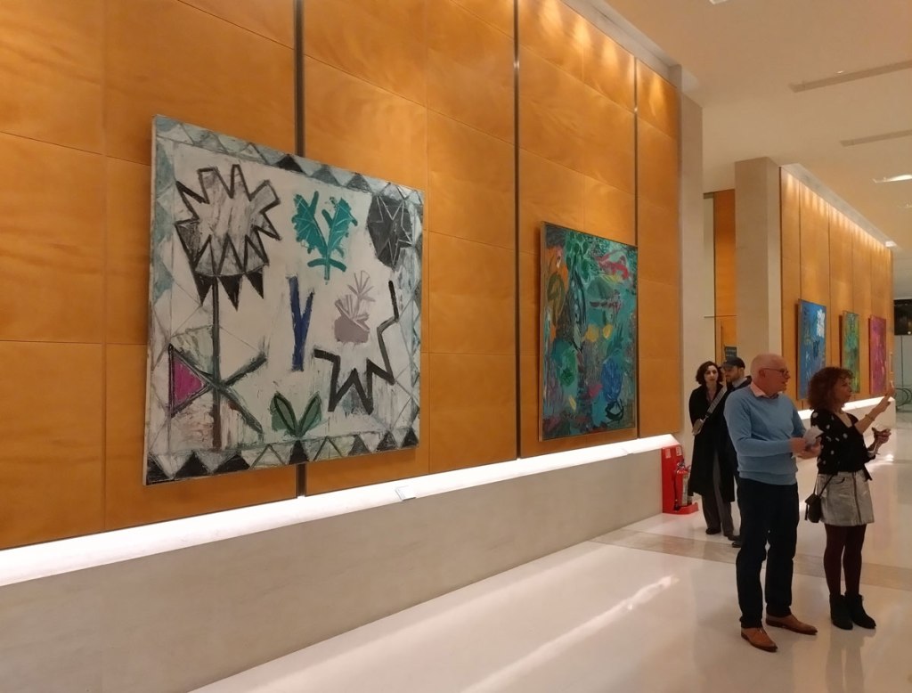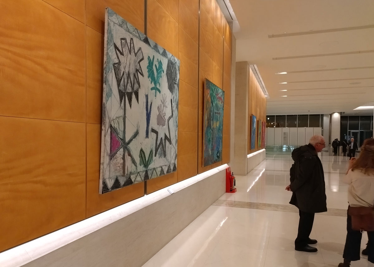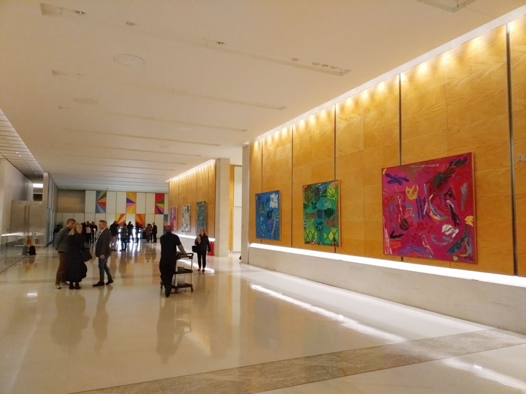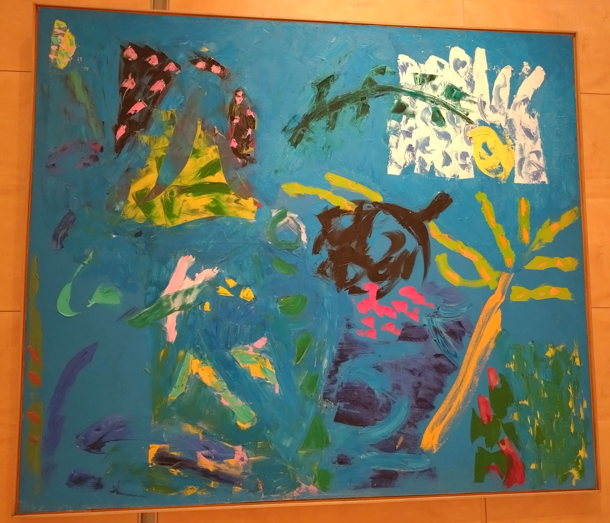 Not much of this version of Dockland would have existed when Tricia painted these big paintings in her East London studio and I’m battling the light pollution and trying to find my way through the maze of all this stuff to the big corporate headquarters of whatever Clifford Chance do, obviously something very big? We’re right in the middle of whatever Docklands this is now is, we’re on the ground floor of a massive tower of apparently “one of the world’s largest law firms, with significant depth and range of resources across five continents”, there’s a hell of a lot of police and security around these buildings, you can’t stand still for long outside in the without someone asking you (in a friendly way, I’ll give them that) what you’re doing. We’re in a massive space at the foot of a very (very) big tower and well they’ve certainly got the space to show these big Tricia Gillman paintings in their massive lobby. These six big paintings are on show for the rest of the year, until December 13th to be totally accurate, it is viewing by appointment only, tonight was a private view reception thing and well, the chance to see these pieces without having to jump through appointment hoops couldn’t be resisted. I have no idea how this show has come together or how things work, I guess we should say thanks to “one of the world’s largest law firms”.