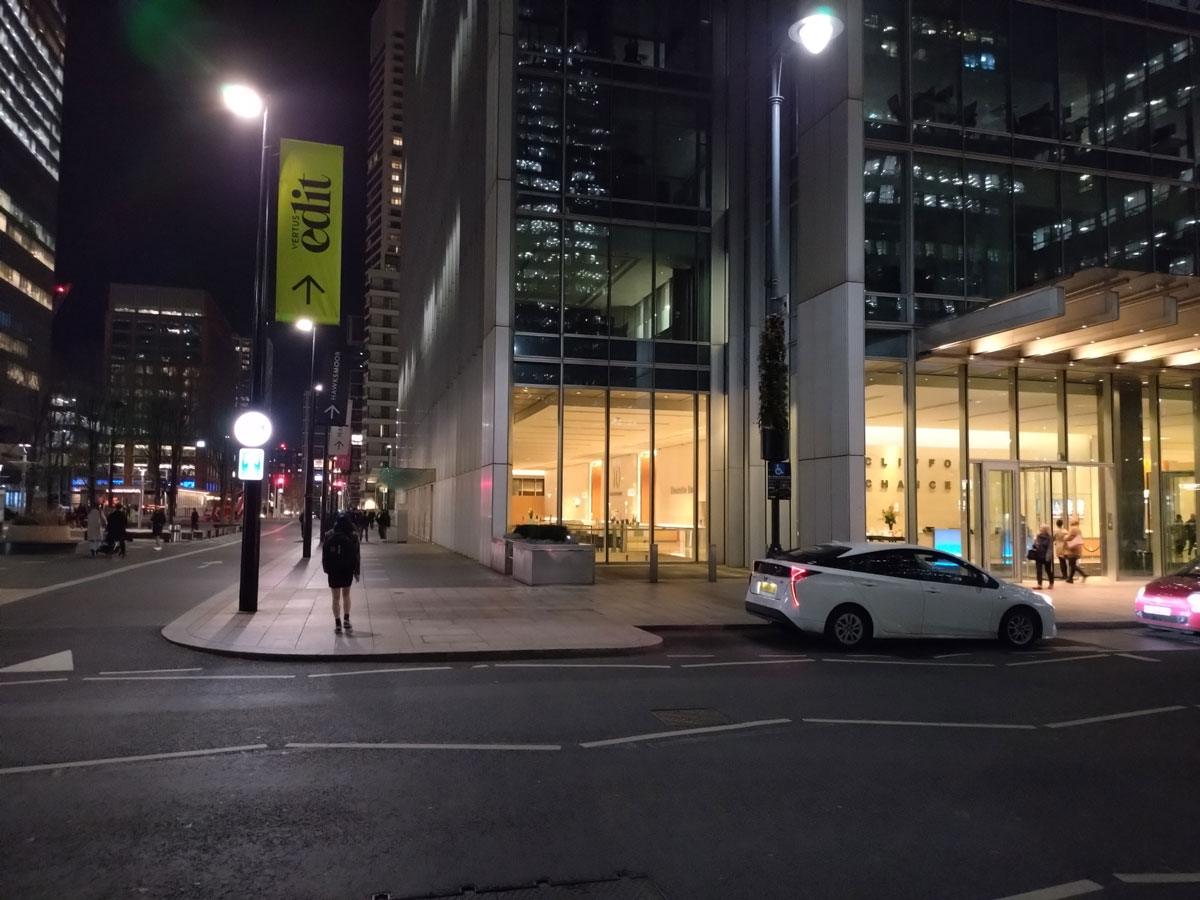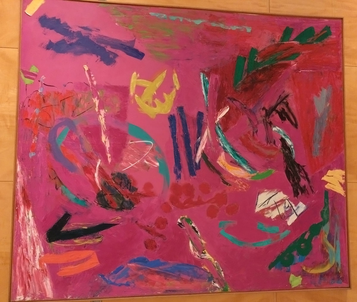 Tricia Gillman Paintings From the Eighties at Clifford Chance, Canary Wharf, London, E14, March 2025 – Kind of fitting to be at an art show featuring these big 1980s paintings of Tricia Gillman on the day that the news of the passing of artist, pioneer and Space Studios co-founder Peter Sedgley reached us. This exhibition is, as much as anything else, about space, about having space, about the freedom to make big paintings. Until today I had only really seen Tricia’s paintings in small spaces, I had only really seen her smaller more recent work in the actual flesh, I had seen these pieces on line but that is never ever anywhere near enough. Artists need space to work, right now artists desperately need space to show work. We’re heading for the shining towers of East London’s Dockland, that city of gold that lies in the deep distance, well not so much gold or any tricks anyone’s tail but some kind of futurist dystopian bright light modernist hell that’s part of the process that has seen so much taken away in terms of art space right across London.