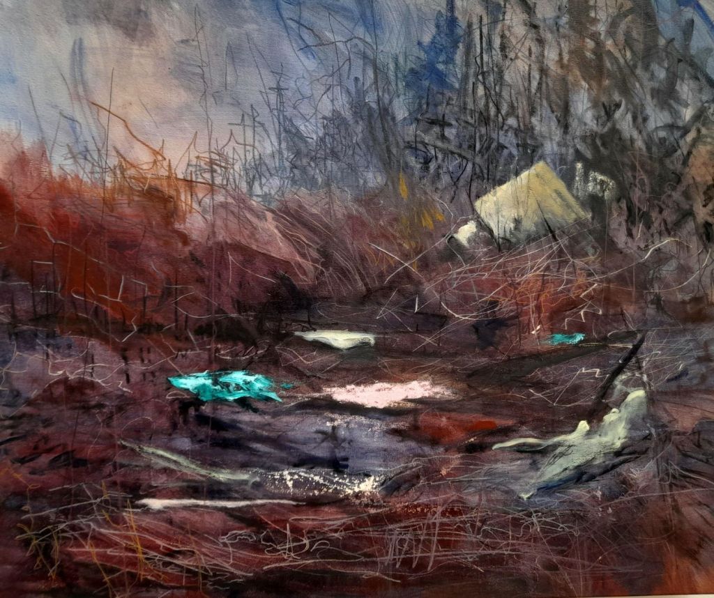 Rosey Prince – Rosey’s practice looks at our perceptions of, and interaction with the landscape and how it interacts and reacts to us. The paintings address these ideas depicting edgelands and marginal places often veering into imaginary and fantastical landscapes through an exploration of the painting process itself. The work has been described as a lament for the degradation of the environment and the anxiety this causes interpreted through the mark making and application of paint”.