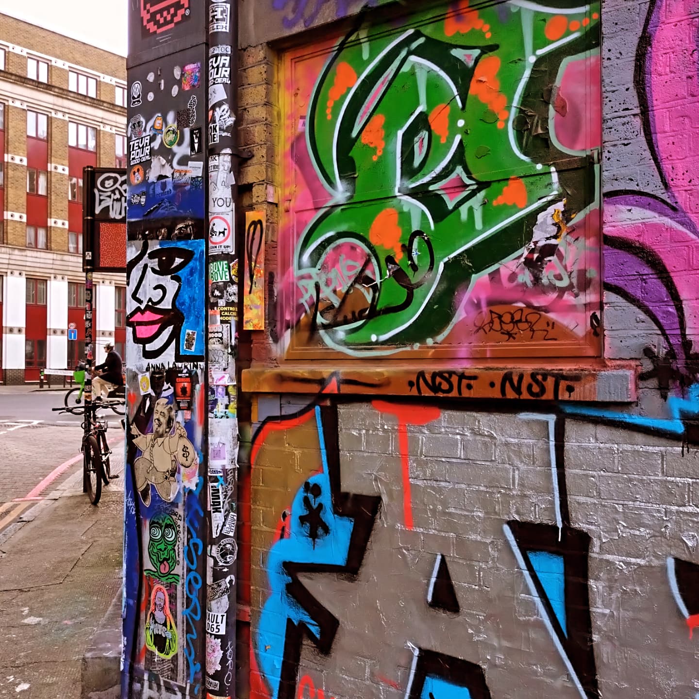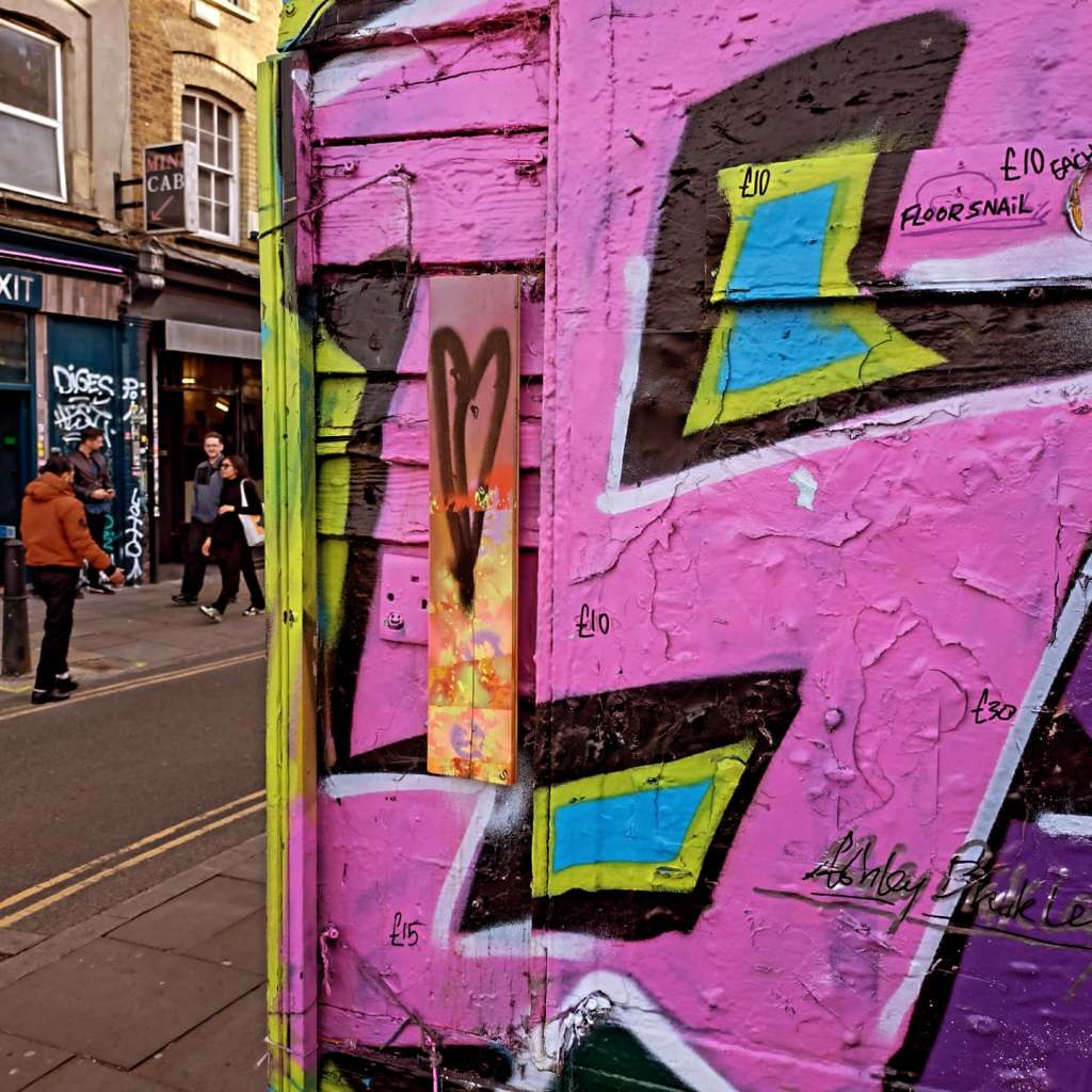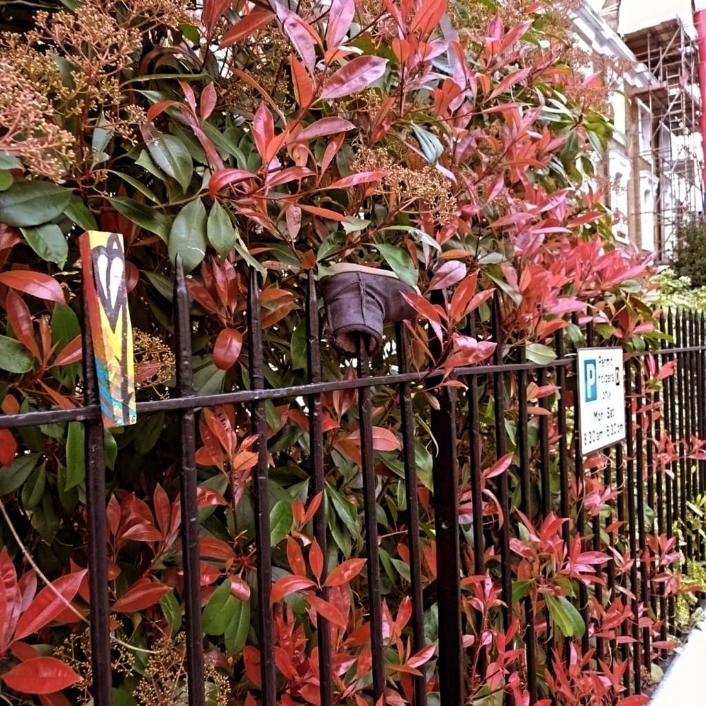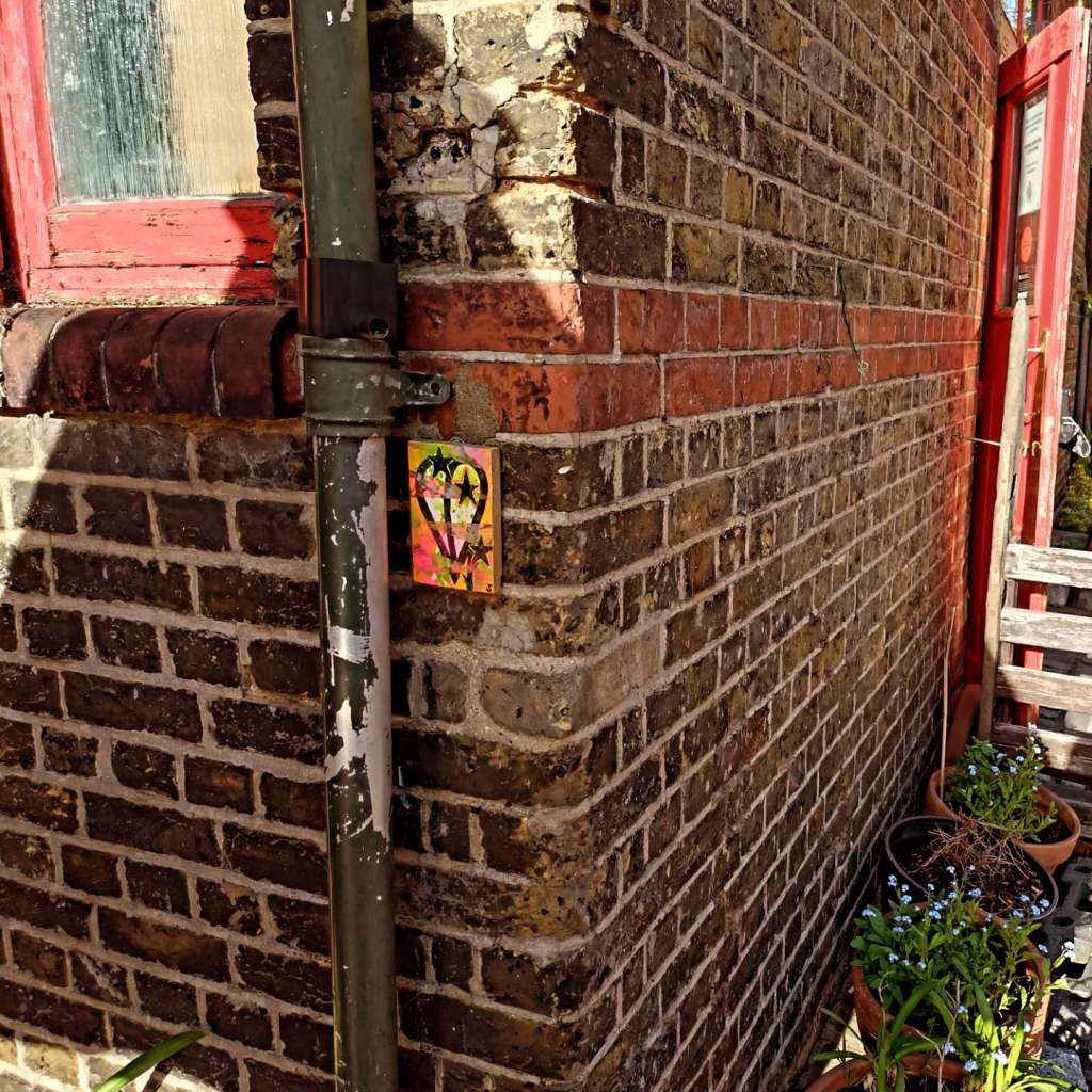 Meanwhile, the leaving of those #43Leaves leaves goes on, this week, Brick Lane, the Isle of Dogs, Greenwich, early this month it was Birmingham, York and… well, 50 of this year’s 365 have now been left. Leaves left left hanging out there on the street for someone to just take should they wish to. Always, painted on found unwanted recycled material picked up off the street. Material picked up, cleaned up, painted on and then left hanging back out there on the street. The recycling is an important part of it. There’s been nearer to three thousand than two thousand now, follow the hashtag – #43Leaves