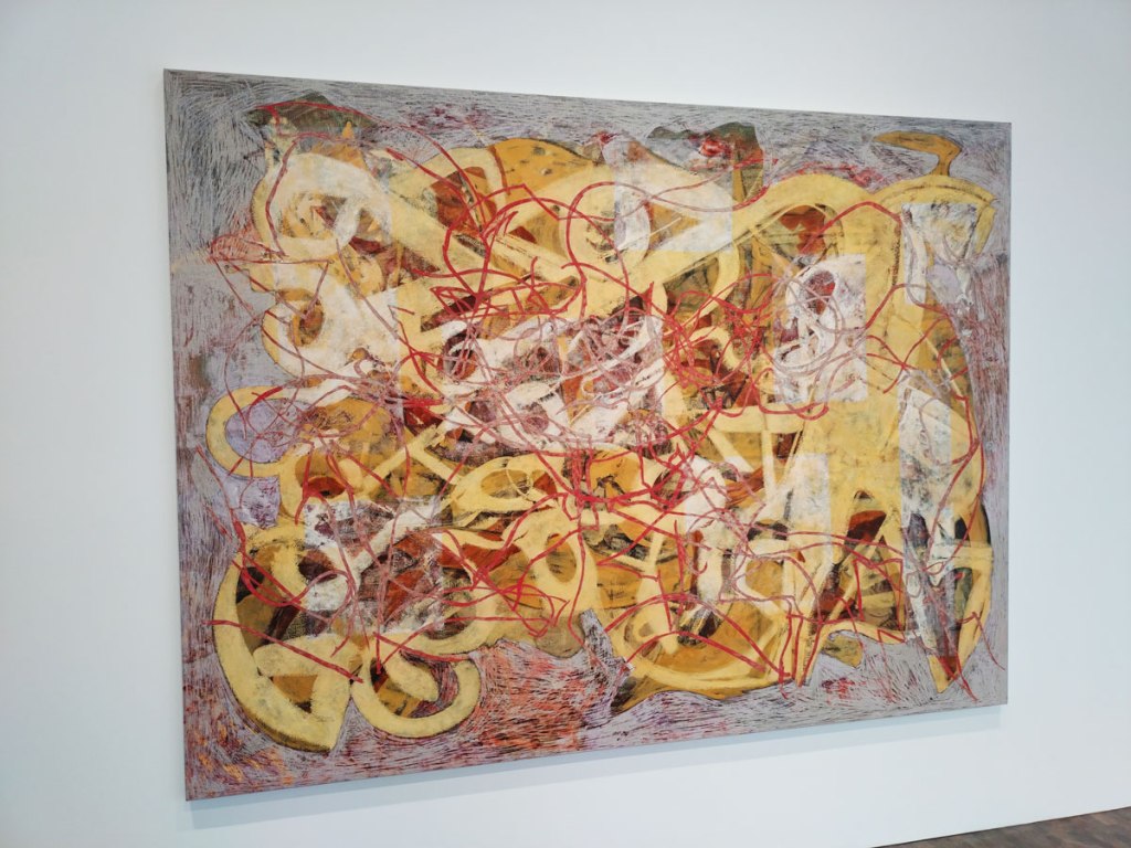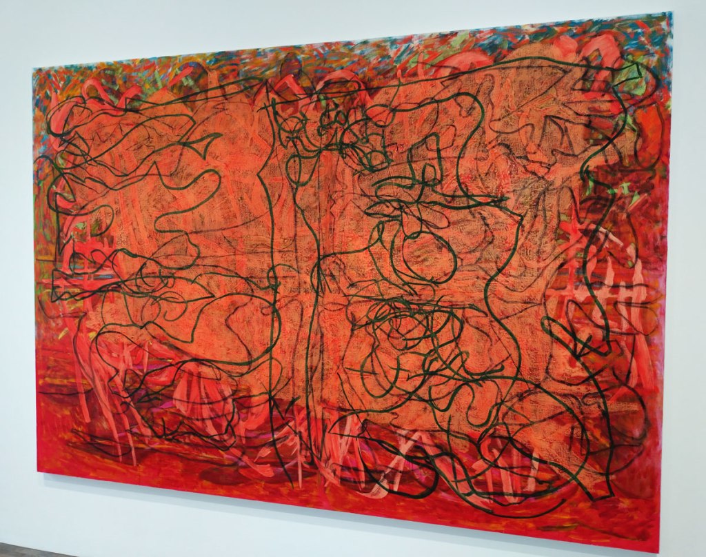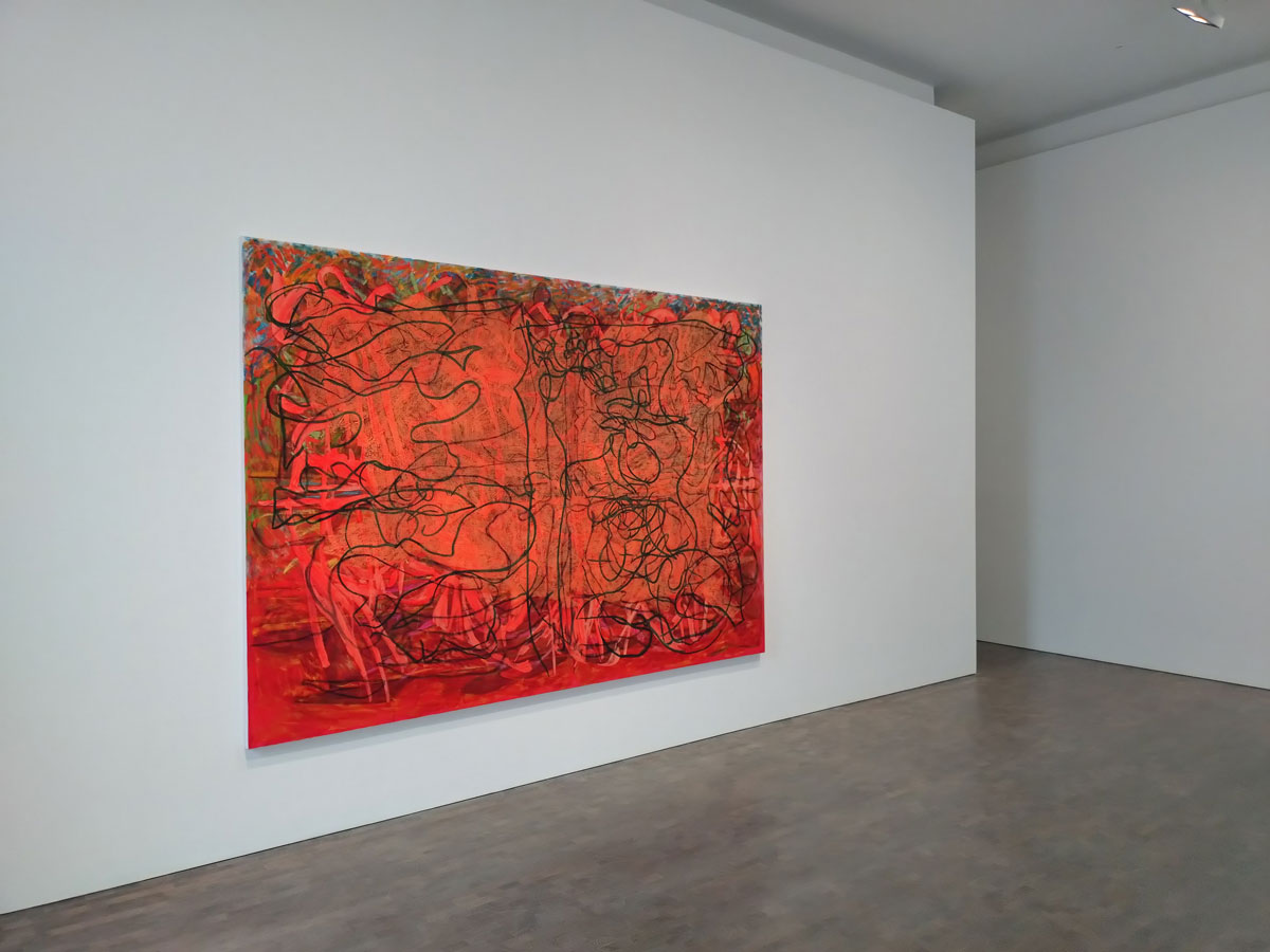 Pace have an exhibition called Negative Space, an exhibition of new paintings and works on paper by London-based artist Tim Stoner, it has been on since early March, it is in the final throws now, better late than never and we’re told “this exhibition marks a significant evolution in Stoner’s exploration of the archaeology of the image. Developed over several years, these works reveal the complex layering and deliberate deconstruction central to his practice”. Can’t say I’m not that familiar with the Artist’s work, can’t say it massively engaged or excited, there is something to it, to those rather big, rather colourful pieces, the gallery talks of “Stoner’s latest body of work deeply engages with the layering and removal of meaning, both within the paintings themselves and through the lens of art history. His approach draws on diverse historical precedents, from the meticulous restoration techniques of Old Masters to the expressive gestures of 1980s New York graffiti and the intricate beauty of Persian calligraphy. In Negative Space, Stoner’s paintings trace the passage of time and process, creating an intersection between the ancient and the contemporary, the additive and the subtractive”. If all of those things are in there, then it has been blended so finely that most of it is lost in some kind of tropically coloured stew of almost Pollockish movement that, if truth be told, kind of underwhelms. “Using unconventional methods, Stoner submerges canvases in swimming pools, pours dissolving chemicals over them, and utilises tools like scalpels, sanding discs, and palette knives to distress the surfaces. These acts of erasure destabilise the identity of the paintings, allowing them to oscillate between unfinished states and final compositions. The result is a dynamic visual language that speaks to the temporality and fragility of the image”. We do tend to try to focus on the art and the exhibitions that we find positives in, it is a policy we are questioned about now and again, not sure anything in this rather big West End gallery is doing much for me.