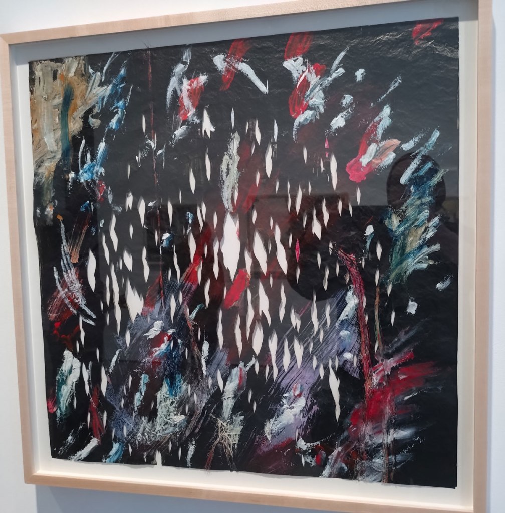 I like this show, I like Wura-Natasha Ogunji‘s art and the way she demands you really look. It isn’t just that your not quite sure what she’s done or what’s she’s used to do it, is that paper or paint under the reflection of the glass? It is as much about the results and at times the rich use of colour, the drama of her composition. She currently lives and works in the city of Lagos, Nigeria, her work does kind of feel like performance, it has that movement in terms of her decisions, I like Wura-Natasha Ogunji’s art.