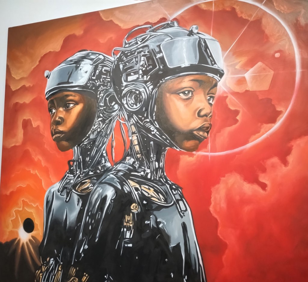 Science fiction, that Afro-Futurist manifesto that postulates a dystopian future in which a hope in humanity is rediscovered. The machines and ideologies that promised liberation have betrayed humankind yet in a world that is on the verge of ecological and social collapse hope is found: machines have intertwined with humans; new technologies have merged with ancient wisdom; a new paradigm is reclaiming what has been lost and AI telling us everything, seems kind of fitting this time aroun