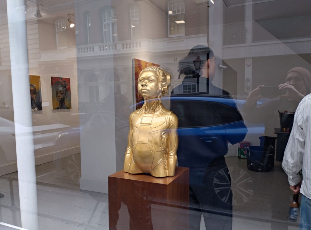 And the around about way to Break The Glass via Tim Stoner’s Negative Space at Pace Gallery, Anne Rothenstein’s subtle mystery at Stephen Friedman Gallery and a number of other shows along Cork Street in the late afternoon as we wait for Black Star to open. So far the still relatively new Kearsey and Gold space at the end of the street just beyond Redfern and Flowers has been rather rewarding, especially that Dilwyn Smith show late last year as well as that Material Syntax group show from earlier this year (or was that last year as well?). Last Thursday it was the turn of a rather interesting artist called Leonard Iheagwam, an artist also known as Soldier, he’s opening his rather immediately good looking solo show Black Star in the intimate West End space. First thought is science fiction, Afro-futurism and the notions of the African diaspora, a culture jousting with science and well there it is on the Gallery’s own show statement, didn’t really need them to say it and I have only just got around to reading it but yes, this is Afro-futurism to the max –