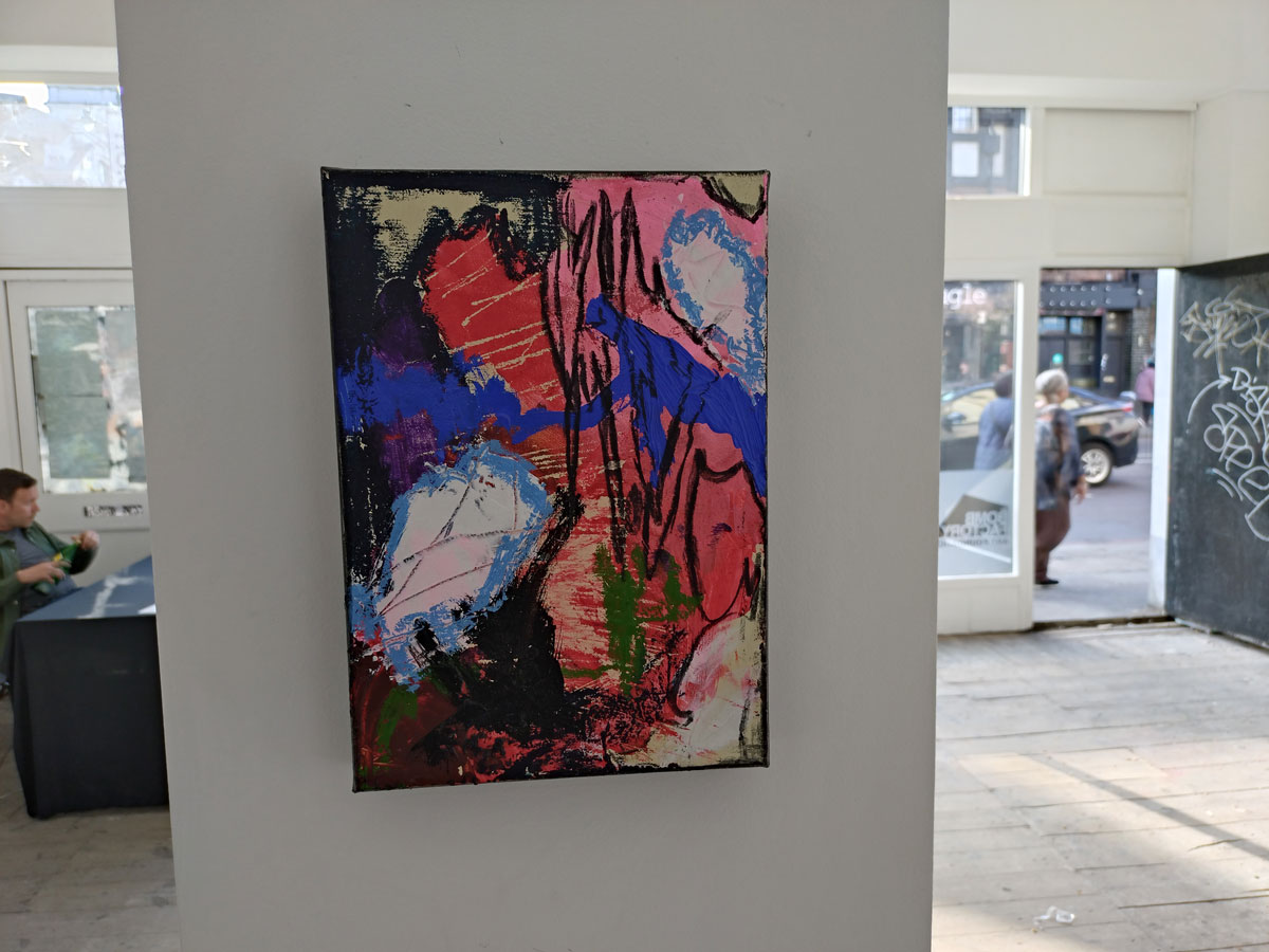 Finally managed to get schedules, flesh and time to align with the Bomb Factory opening hours and get to the Factory’s East London space to see Hetty Douglas and Katie Eraser’s Flesh and Time. Seem to be encountering the energy of Hetty Douglas via her paintings quite a lot recently, that’s no bad thing, really needed to catch this one before it ended. “A delicate duo show from Hetty Douglas and Katie Eraser, Flesh and Time takes inspiration from Eileen Myles’ Notebook, 1981, exploring themes of loss, connection, queerness, and pain”. If it is delicate then there’s a strength is their shared delicacy, these pieces feel alive, feel powerful and yes, they do feel strong. This is a beautifully hung exhibition, each piece with time and space to breathe and not impose, to talk to each other without shouting over one another, and while it isn’t immediately obvious which artist has painted which painting (until you clue in to the use of colour and Hetty’s blues that lead you to the other rather obvious clues) these are pieces alive with raw personality…