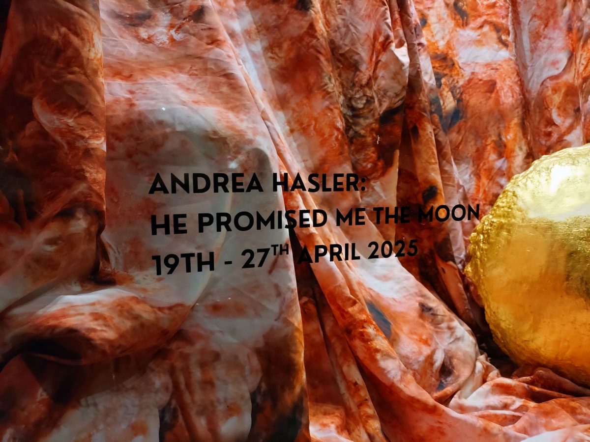 The title, He Promised Me the Moon, speaks to themes of aspiration and disillusionment, hinting at unattainable dreams and grand ambitions. It also nods to contemporary figures like Elon Musk and his lunar visions, yet here, the “moon” takes on a corporeal, unsettling presence – an embodiment of consumption, indulgence, and the promises that never quite materialise. As with much of Hasler’s work, this installation challenges the viewer’s perception of beauty, power, and desire, pushing the boundaries between attraction and repulsion within a hyper-sensory, immersive environment”.