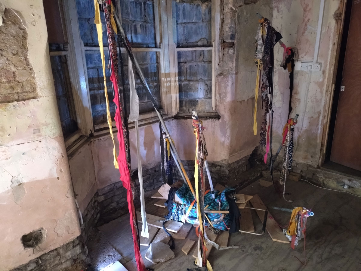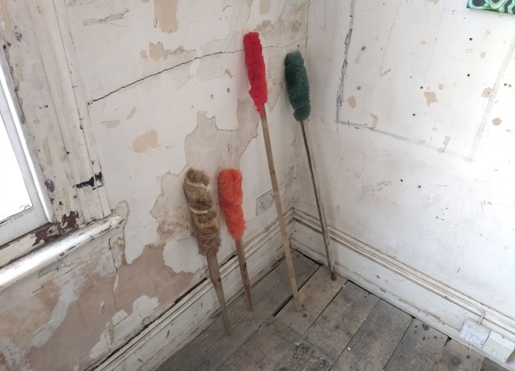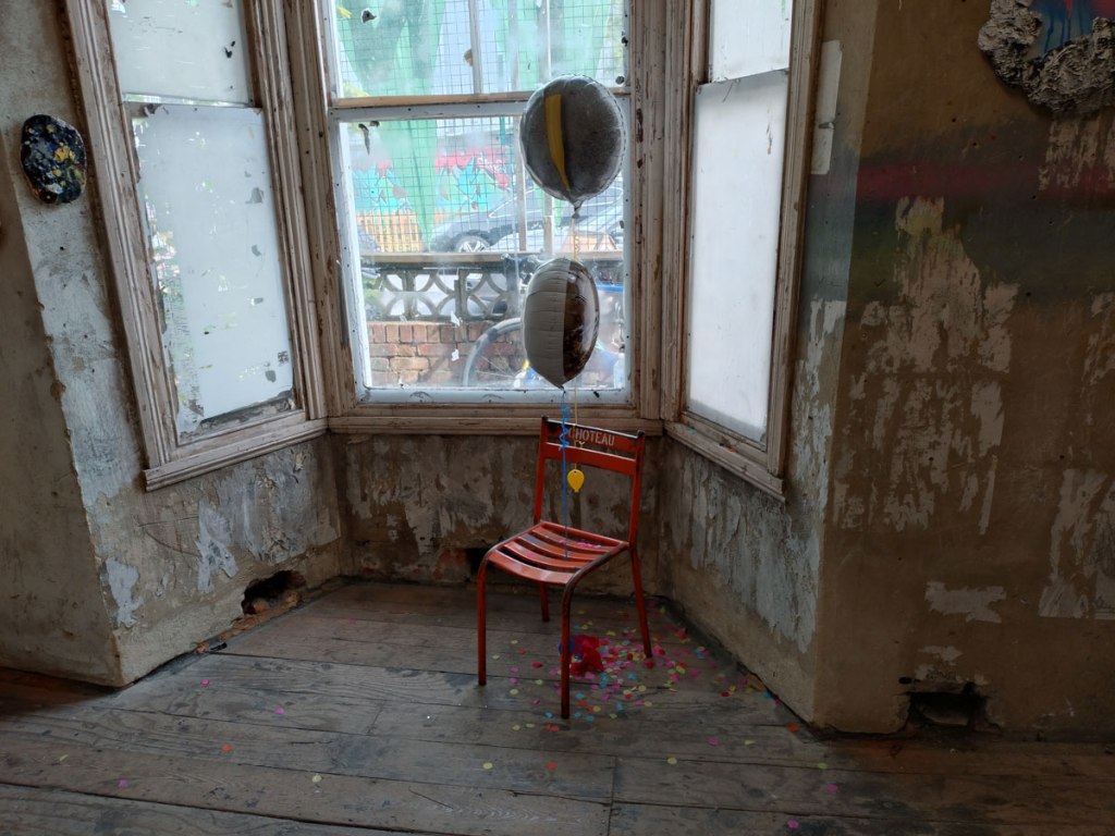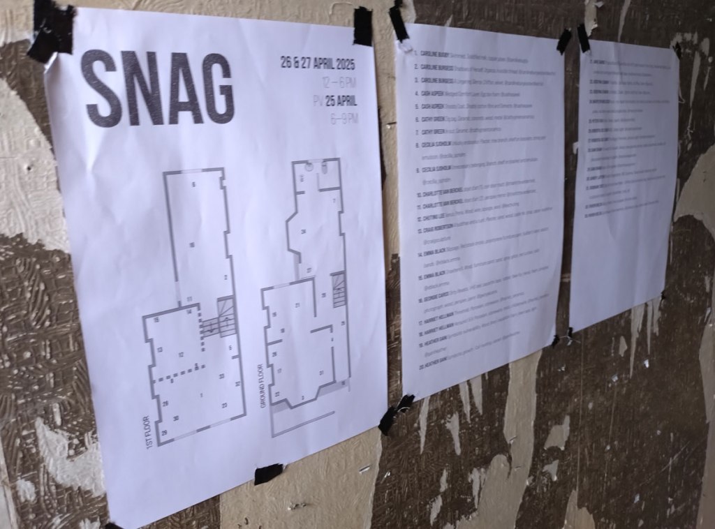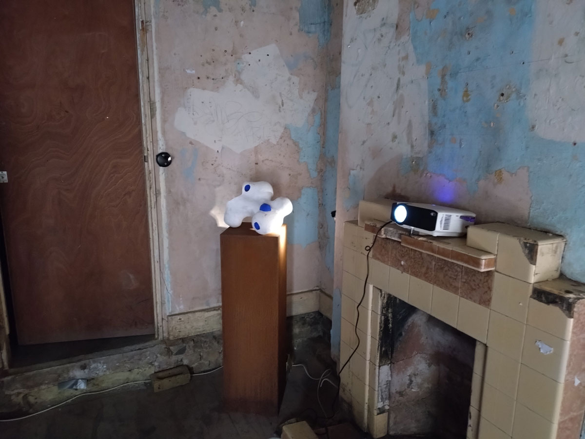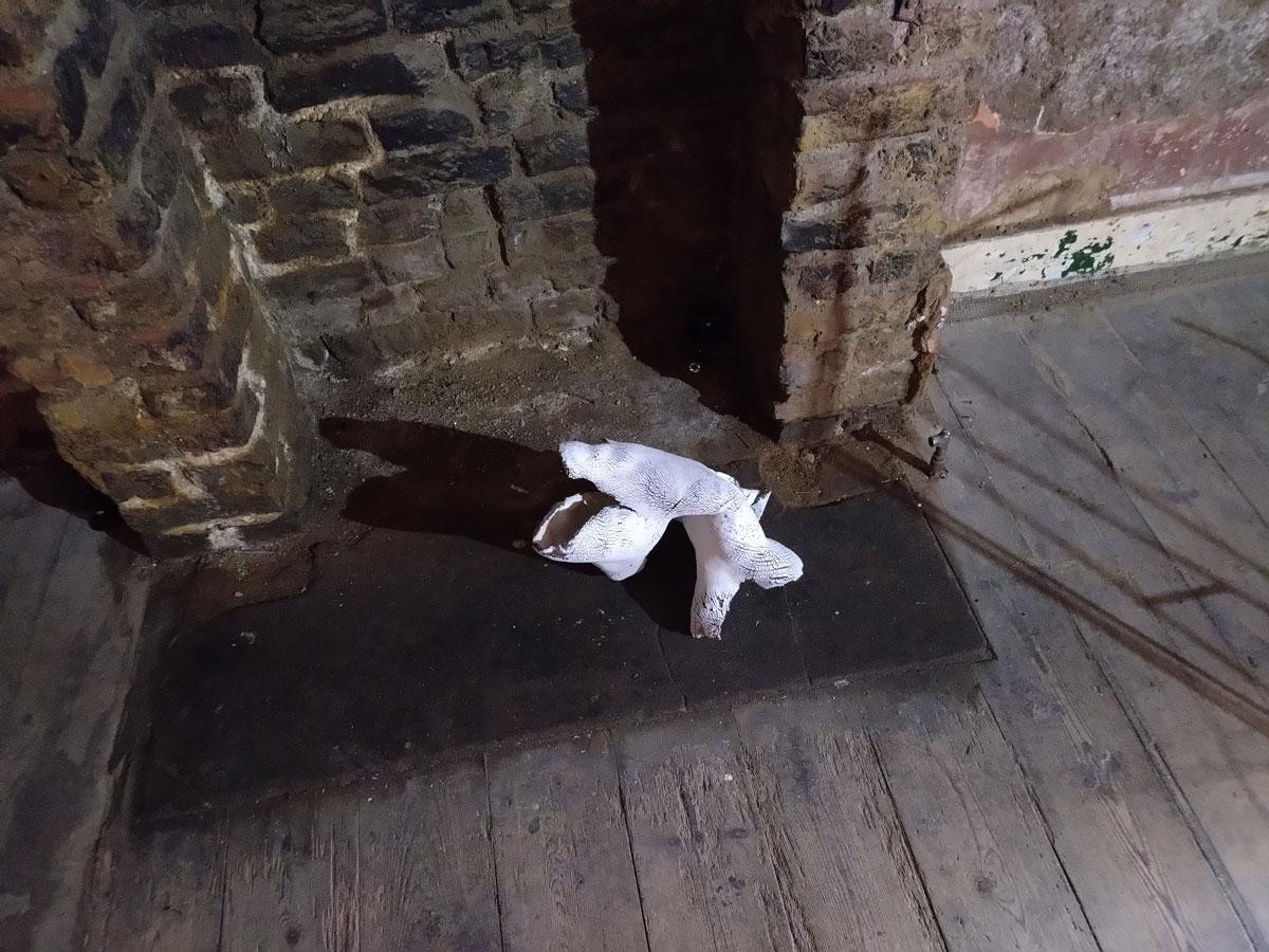 So Blink was in Safehouse Two, meanwhile next door in Safehouse One in the other half of the semi-detached falling down house the Message in a Bottle welcome map is out and Snag is happening. Snag is a Sculpture show, another group show with another long list of participating artists pinned up in the darkness over there. Didn’t see any advance publicity or indeed any listings anywhere in the art media for this one so we have no advance warning in terms of names. Was rather hoping this half of the space would be open as well, pleased to see it was. Once again, we have a group show, once again a big list of participating artists, this time there’s a list up on the wall downstairs (rather than bloody QR codes) but those lists really aren’t corresponding with anything and once again I have no idea who has done what or what the price of fish might be or where the building ends and the shows begins. Once again there’s some good art in here, there’s one or two really great pieces of sculpture or installation or whatever you want to call it in here, once again there’s some maybe not so good bits but once again enough of it is good enough to make this a rewarding show. I can’t tell you who did what, here’s another #43SecondFilm, there’s a bag load of photos down there, if we had some names we’d maybe pick out some highlights, maybe say a whole lot more but we don’t so we won’t and no, no moaning, just shut up and enjoy it.