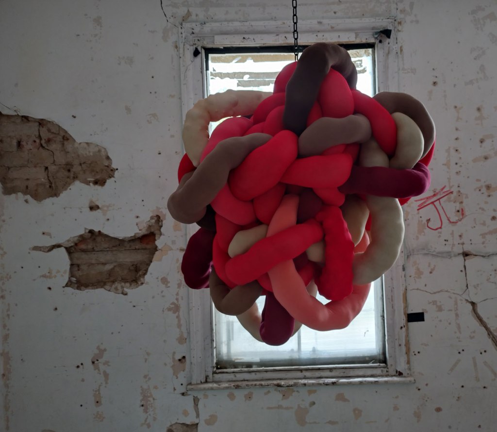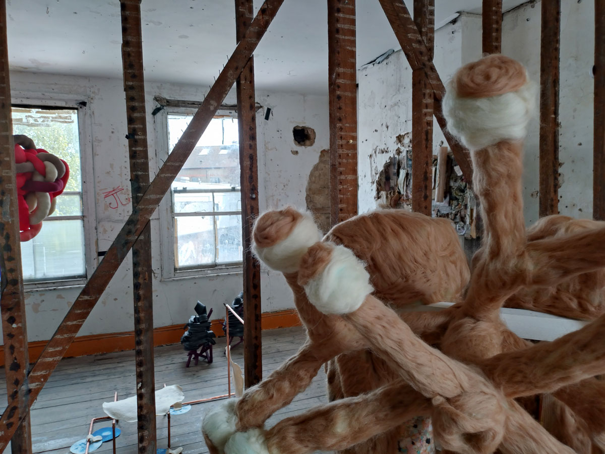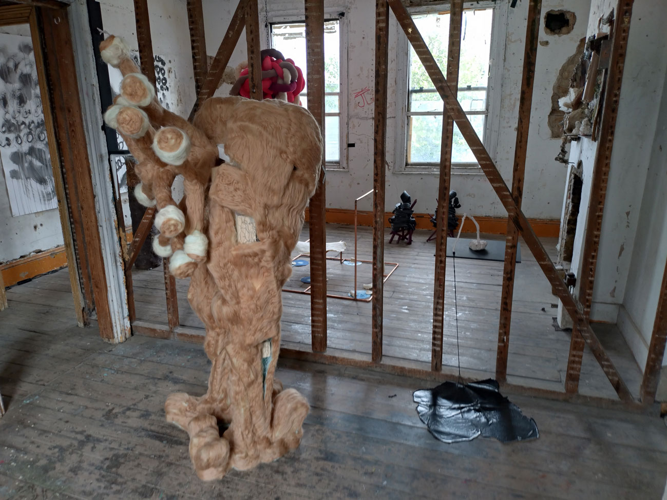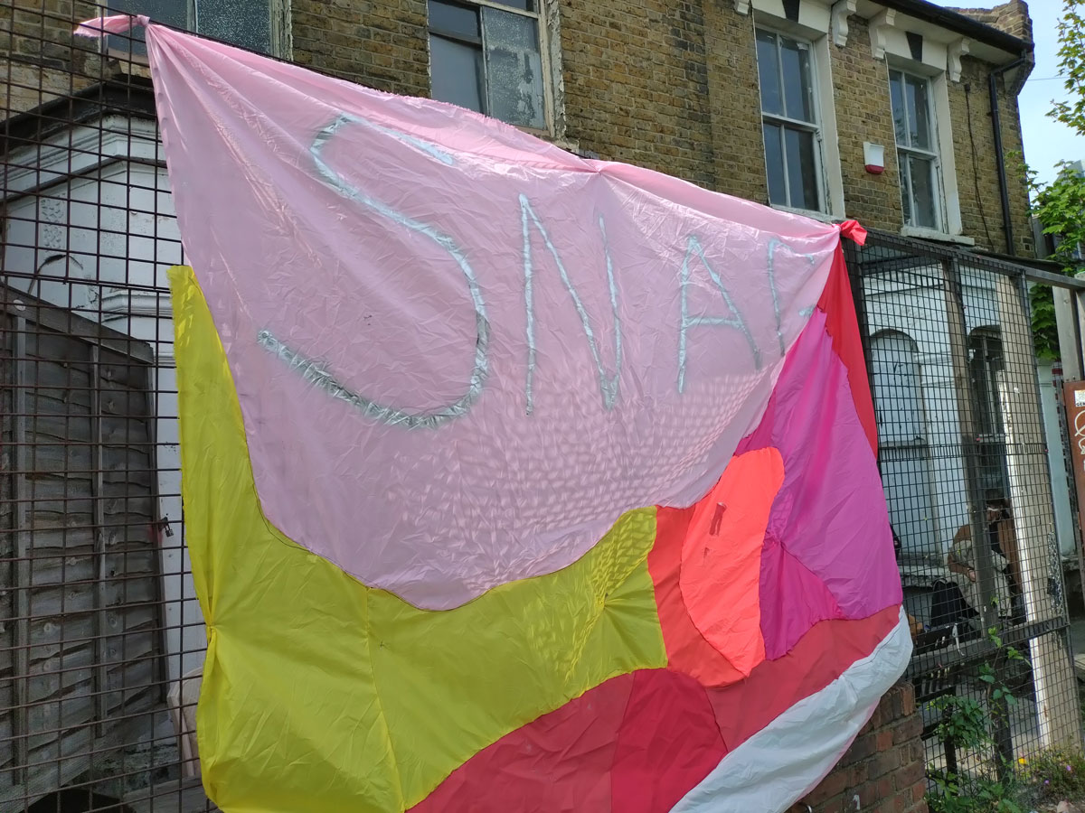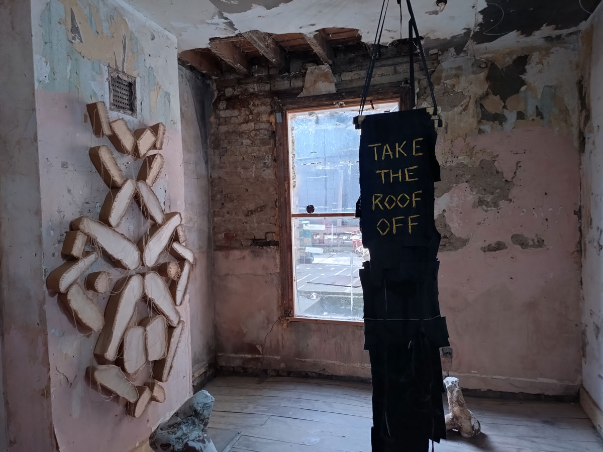 So Blink was in Safehouse Two, meanwhile next door in Safehouse One in the other half of the semi-detached falling down house the Message in a Bottle welcome map is out and Snag is happening. Snag is a Sculpture show, another group show with another long list of participating artists pinned up in the darkness over there. Didn’t see any advance publicity or indeed any listings anywhere in the art media for this one so we have no advance warning in terms of names. Was rather hoping this half of the space would be open as well, pleased to see it was. Once again, we have a group show, once again a big list of participating artists, this time there’s a list up on the wall downstairs (rather than bloody QR codes) but those lists really aren’t corresponding with anything and once again I have no idea who has done what or what the price of fish might be or where the building ends and the shows begins. Once again there’s some good art in here, there’s one or two really great pieces of sculpture or installation or whatever you want to call it in here, once again there’s some maybe not so good bits but once again enough of it is good enough to make this a rewarding show. I can’t tell you who did what, here’s another #43SecondFilm, there’s a bag load of photos down there, if we had some names we’d maybe pick out some highlights, maybe say a whole lot more but we don’t so we won’t and no, no moaning, just shut up and enjoy it.
