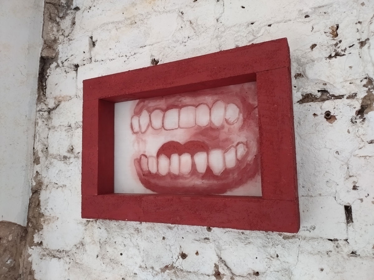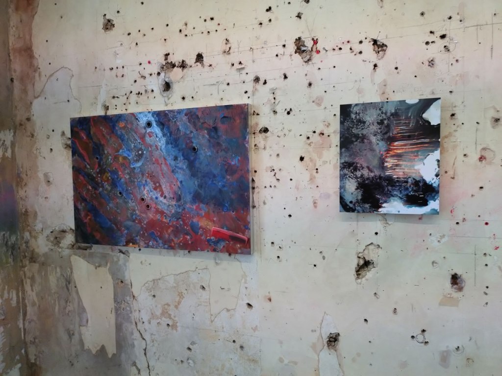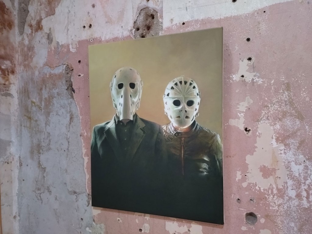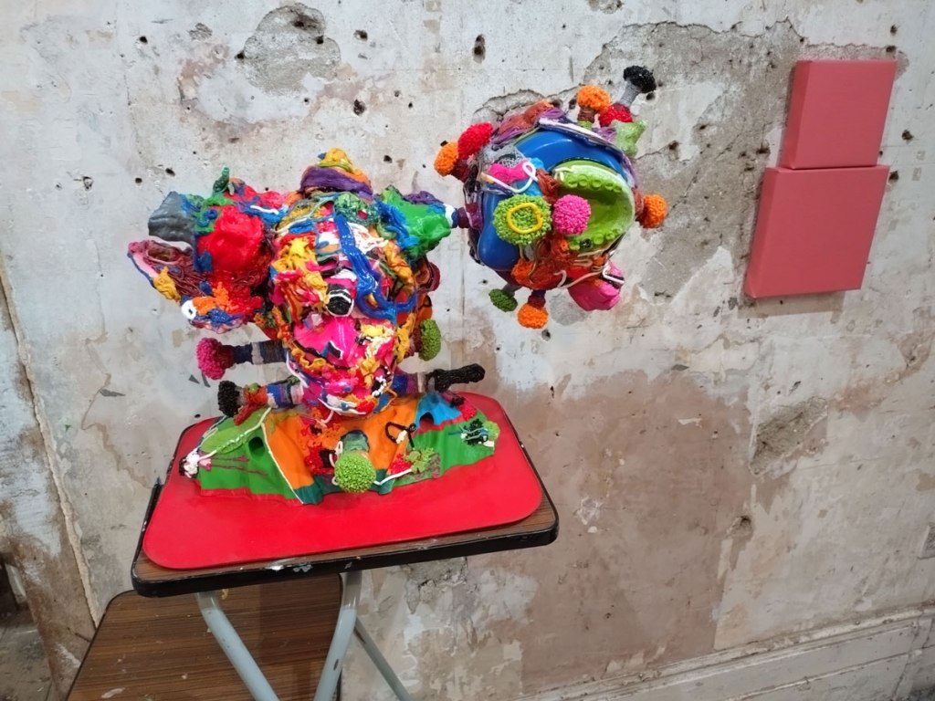 Now if the purpose of these Blink shows, or indeed the show next door, a group show called Snag, is to create and curate an event then it and they certainly work and gloriously so. These shows certainly are events even if we are maybe getting just a little too familiar with crumbling walls of Safehouse now, these shows really do work as events. If the purpose is to inform us about the artists in the hope that we go find out more about those artists, which surely is the main objective when putting together a group show like this? Then both these shows kind of fail. Once again, other than the work of artists I’m already familiar with, I really have no idea who’s work I’ve been looking at in either of the shows at Safehouse One and Two this weekend. And I did promise myself I wouldn’t moan about labels again – there’s a woman upstairs asking about one of the pieces and telling one of the artists how much she detests QR codes and how much having to go through all the hassle of using her phone annoys her so much, there’s someone else joining in and saying he doesn’t even own a smart phone as he pulls out something that looks like it might have been cutting edge twenty or so years ago, “I just bought this” he says proudly. Yes, there are pieces of paper piled up over there but hey, try matching what’s on the paper to the rather haphazard all over the place hang! So no, I swore I wouldn’t moan about the lack of a simple artist name somewhere near the pieces and no I don’t know why a simple label is considered so uncool and unpleasing especially in this complete mess of a place. So no, I haven’t got a Scoobie Doo when it comes to who might have created what in either of these two shows and there is a lot of art in both the spaces, a lot of jousting for attention, and that’s before all the noise the space itself makes with all those walls and holes and marks left from previous shows and the traces of previous lives – we’re not talking spotless white walls in here, those walls are talking loudly before you even start to consider the art hanging on them, indeed at times you are wondering what is art and what is the actual faltering building? You are kind of bombarded with stuff, with marks, with cracks, it is an overload. Dare I say there’s too much art in here this time? Hey, no moaning, if they don’t want to tell us who painted or sculpted what then so be it, we’ll remain oblivious and just enjoy the pleasure of the moment, of the event(s) and a couple of really good art shows.