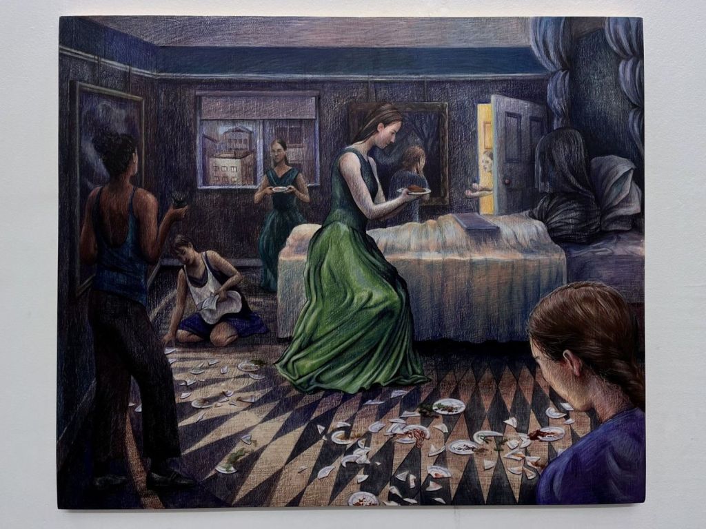 ‘The Cornerstone’ by Louise Reynolds, (watercolour pencils on wood panel, 61 x 51cm, 2024)
