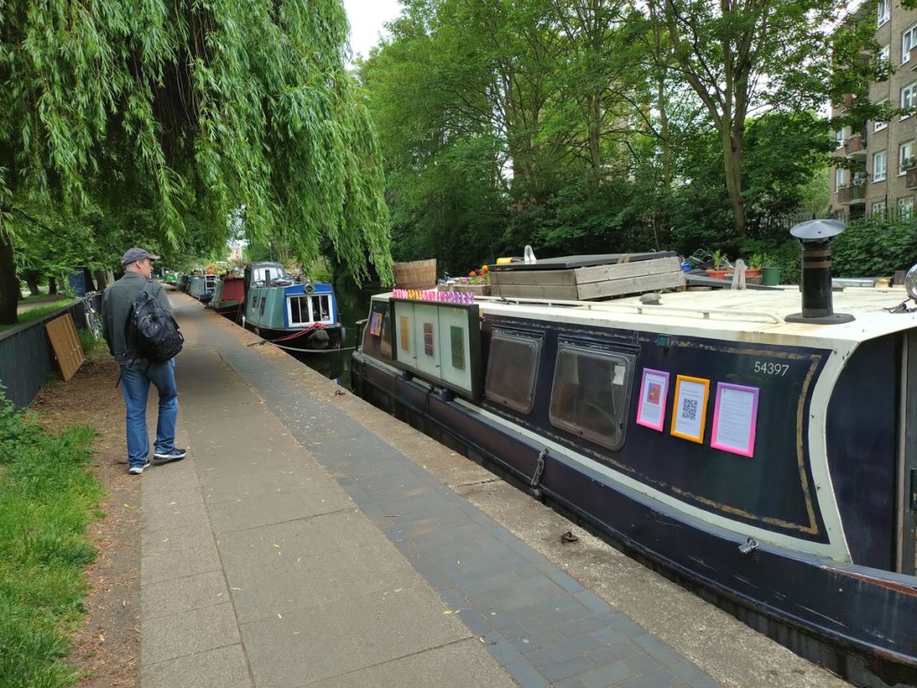 I love this, and when I was there for fifteen minutes yesterday there was people stopping, none of who knew about it and just happened to be passing, It looks like the boat itself is someone’s studio, there wasn’t anyone there unless they were busy inside, but you really don’t need anyone to be there, the art and the information is on the outside of the boat, simple and really well put together…