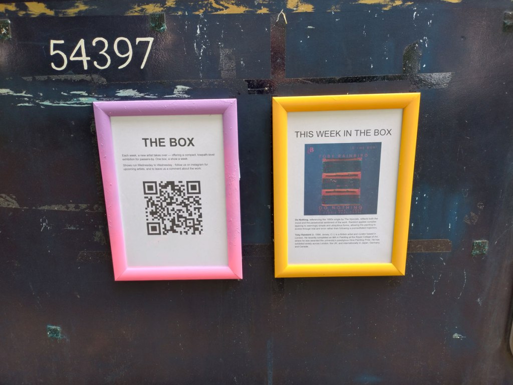 Tony Rainbird, Do Nothing at Canal Boat Contemporary, Victoria Park, East London, May 2025 – Now this one had us curious, both in terms of Tony Rainbird’s paintings and the boat itself; “Our second featured artist in the box will be Toby Rainbird, who will present Do Nothing – a solo showcase of three paintings. We’re huge fans of Toby’s work, which we first encountered when he was one of the participating artists in the Canal Boat Art Fair – the project that gave birth to Canal Boat Contemporary. Since then, Toby has gone on to study Painting at the Royal College of Art, where he won the university’s prestigious Hine Prize. He is now the Freelands Fellow at the University of Brighton. His paintings have gone from strength to strength. They occupy a space of their own – hovering somewhere between geometric colour fields and the suggestion of representation. We love the tension Toby creates with his tonal chords, offset by zinging, discordant key tones. They really are like watching music” – well that is what whoever is behind the boat said and yes, his colour fields do have a painterly zing to them, a commitment, a generosity of paint. And there it is, on the toepath, here’s another #43SecondFilm…