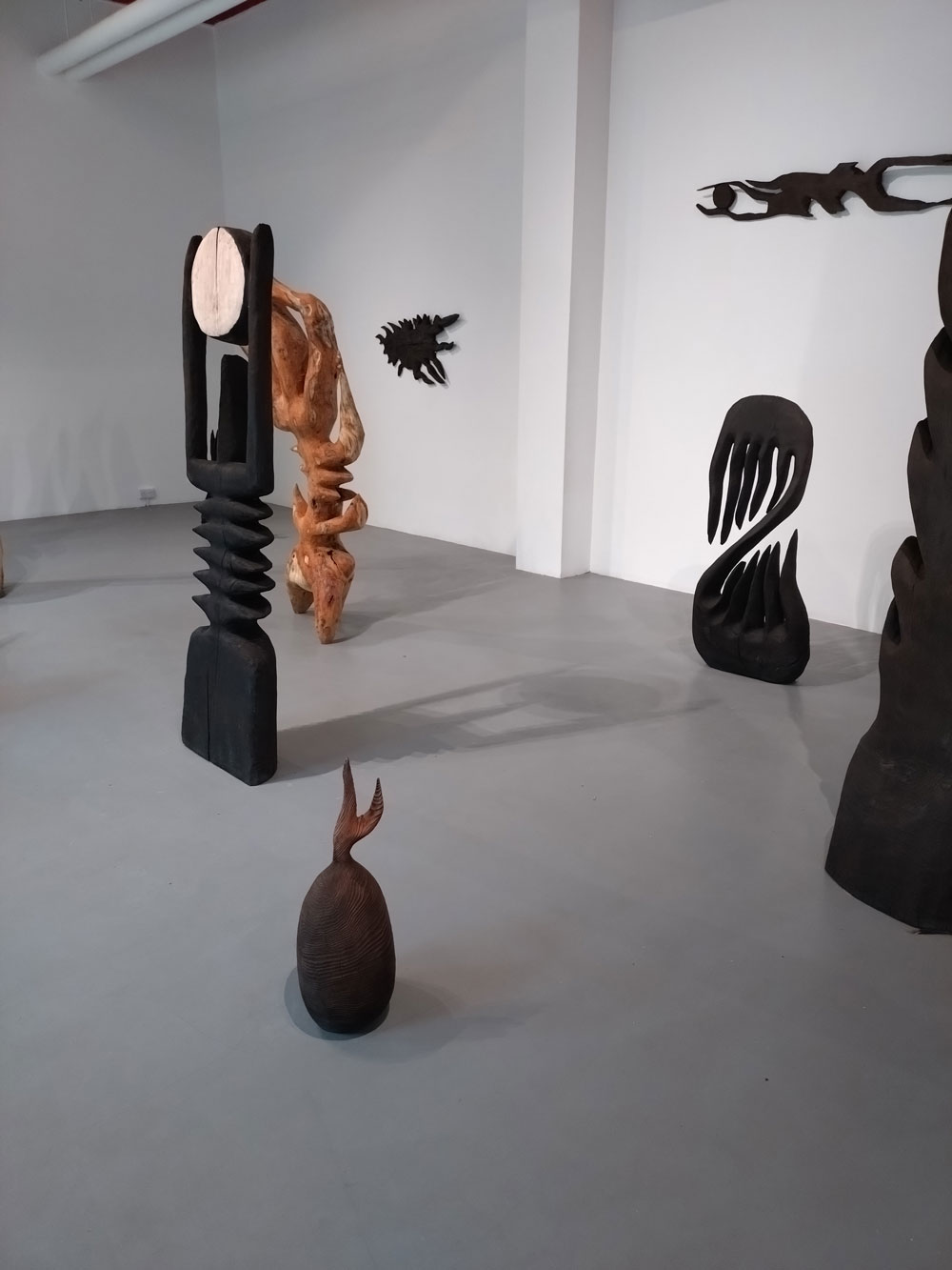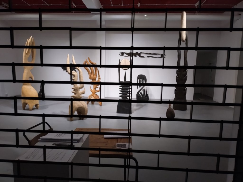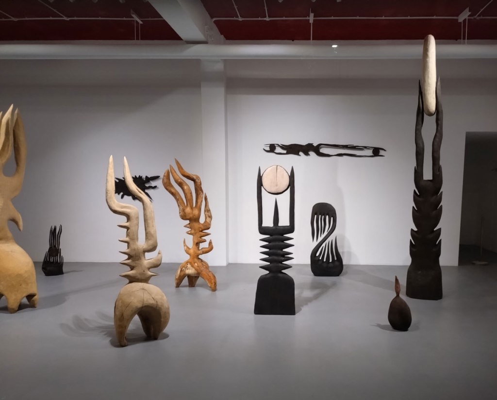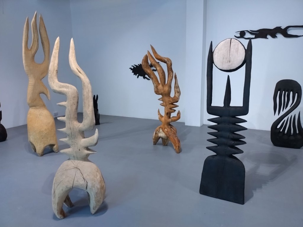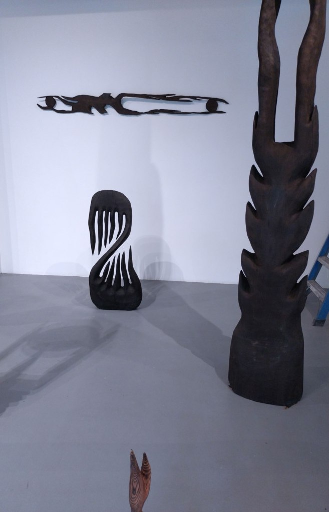 It is very easy to want to at least question, is he the real deal? How much depth is there to these interpretations of the evolution of sacred objects and lost cultures? I mean, it does feel good in the gallery, it does feel right, it does feel instinctive; “Bailey Barker’s sculptures – whether monumental or intimate – operate as vessels of memory and echoes of myths, inviting audiences to reconnect with a primal sense of wonder and awe”. I am enjoying this show, it does feel good, not sure if I’m feeling wonderment or awe, I am kind of want to explore the artist and his art a little more. Doesn’t he want to take it outside of the gallery and on to the streets here? Not that he has to, the street isn’t for everyone, and hey it does feel welcoming, engaging, inviting, like I said before, it is very (very) enticing, it does make me want to explore more of Sol Bailey Barker’s work…. (sw)