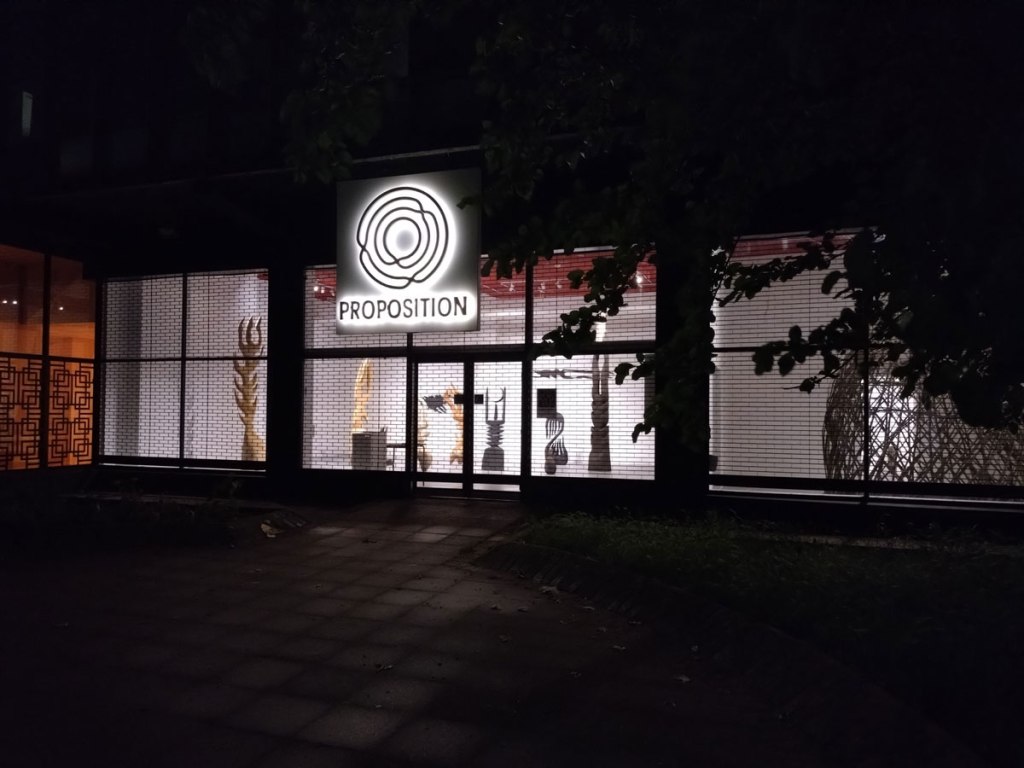 The bright lights of the gallery calling out from the former piss-smelly graff-drenched abandoned corner on Cambridge Heath Road, on the same block as Herald Street, so the normally semi-reliable Art Rabbit had almost got things right. Proposition looked rather splendid all lit up for no one in particular somewhere around the witching hour. The midnight encounter demanded a walk back in the daylight, it did look enticing through the window blinds, mysterious, demanding. Strange looking sculptures, a touch of the spiritual about them, something very right…