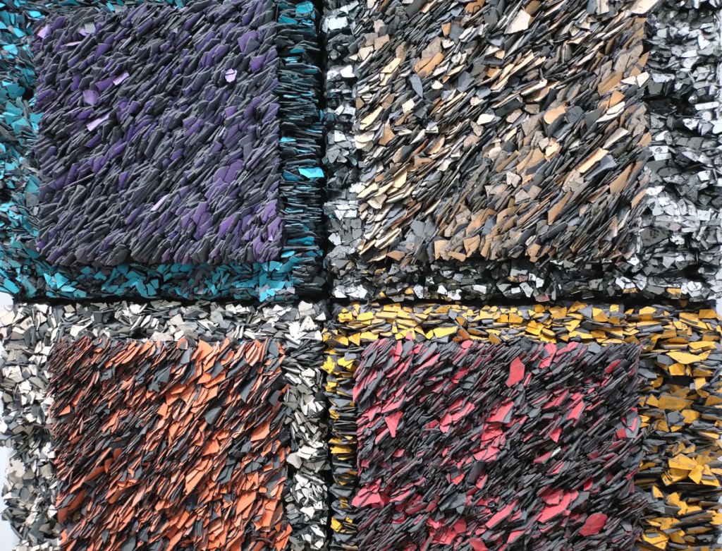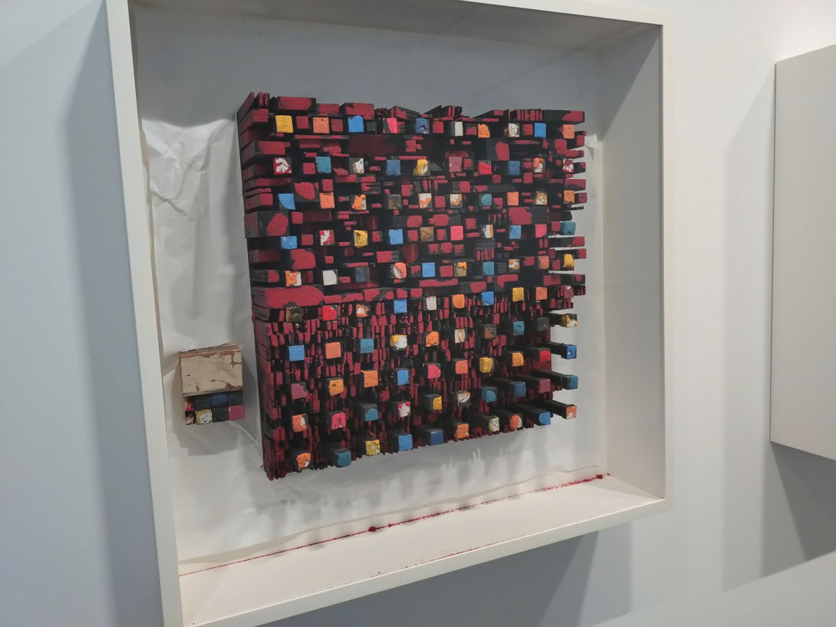 Right now “Goodman Gallery London is pleased to present an exhibition by Leonardo Drew, featuring a striking new series of eight recently created wall sculptures and six new works on paper, collectively crafted from wood, glass and painted plaster.” more of the artist’s engagement with material, “Drew continues his exploration of form, texture and spatial dialogue.” – it is mostly about the texture, the thrusting out from the space, the pieces of the piece coming to meet you and yes, a tension between destruction and regeneration, order in the disorder, calm after some kind of storm maybe, the putting back together on things perhaps?