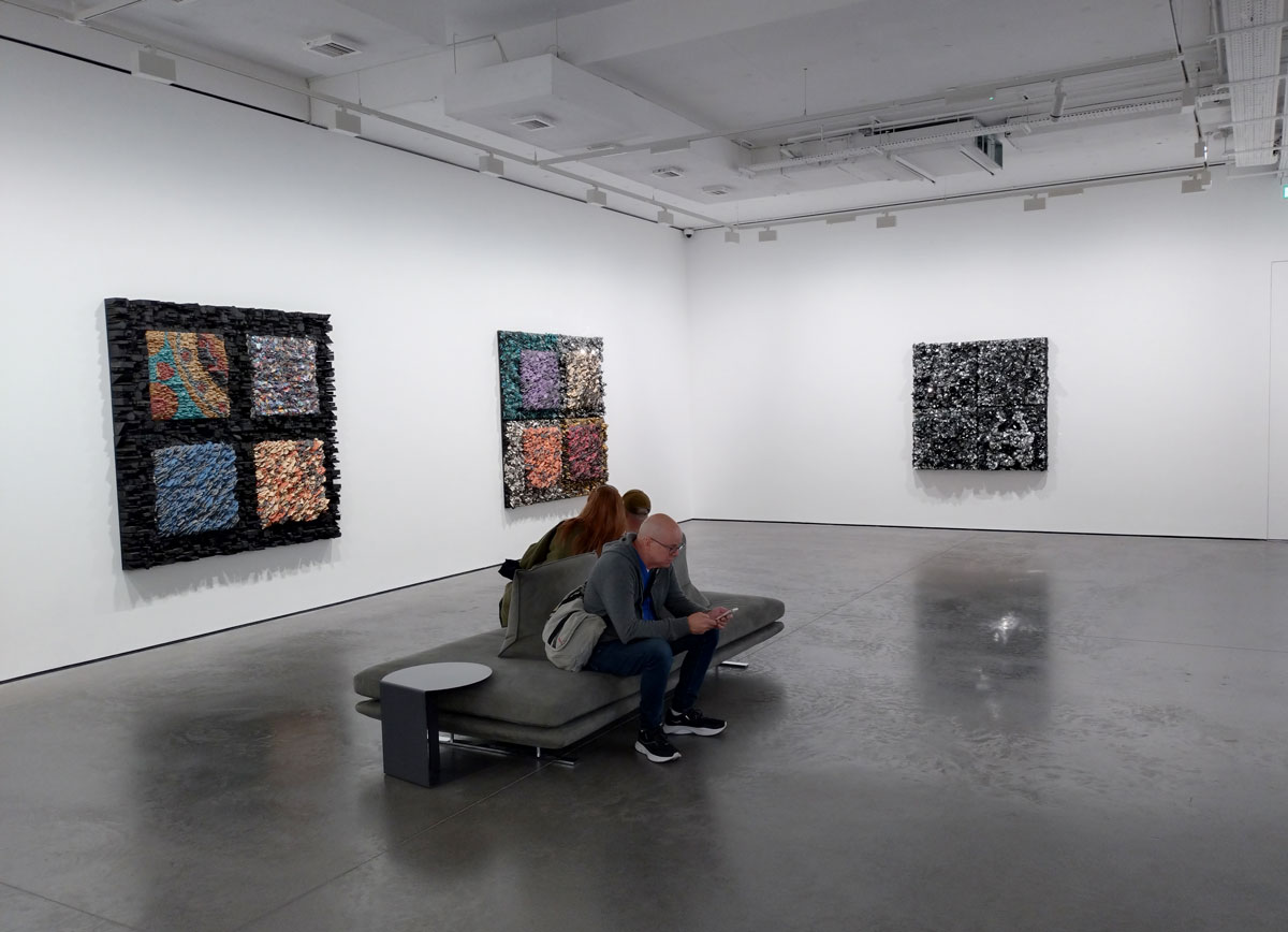 Leonardo Drew (b. 1961, Tallahassee, Florida) is a New York-based artist who, over three decades, has become known for creating contemplative abstract sculptural works. I’m not sure how much I really want to contemplate them? I am enjoying these works, especially the bigger pieces down in the main body of the gallery, the pieces back upstairs at street level aren’t quite so exciting simply because they’ve been put behind glass and that glass does kind of weaken their power as pieces of art somehow. It is all shiny bits of material, you sense a pack of magpies would be in heaven down here, I do like them, I’m just not sure I’m going to be thinking about them anywhere near as much as I shall be thinking some of the art I’ve encountered in the last couple of days. Enjoyable, interesting but, it isn’t you, it really is me…