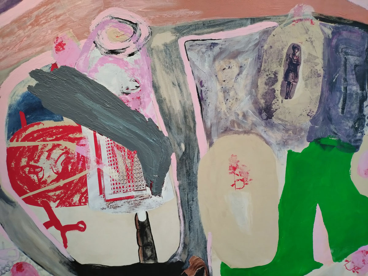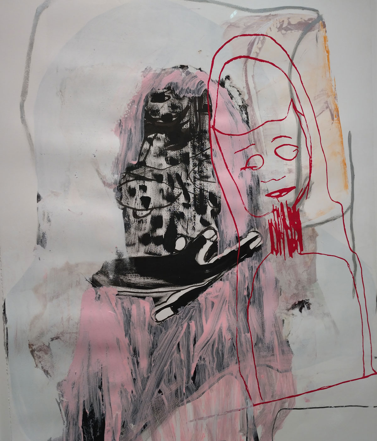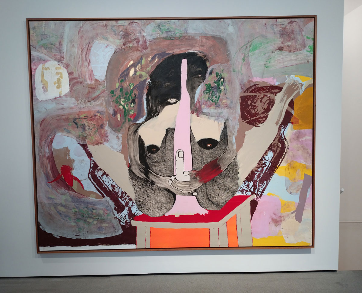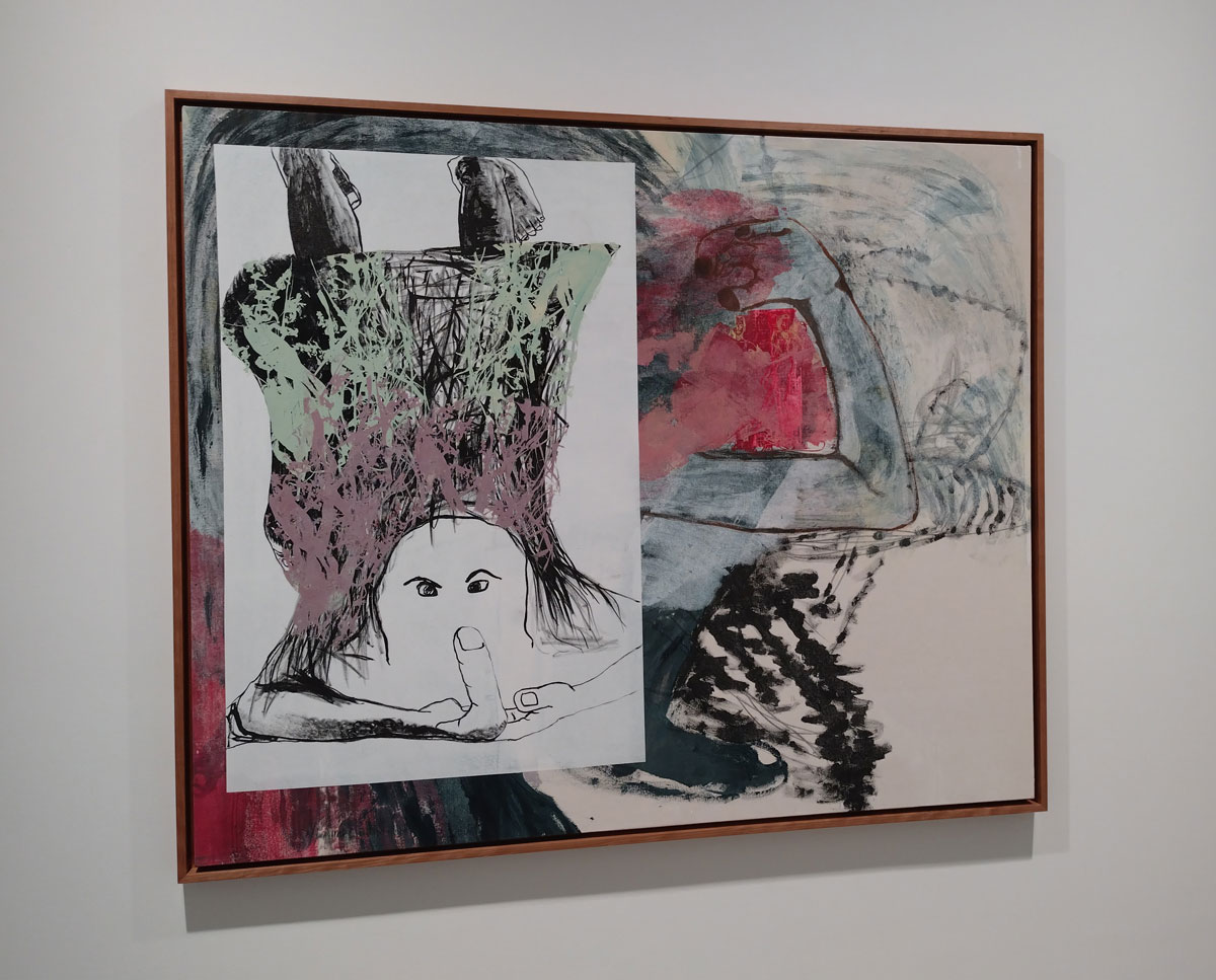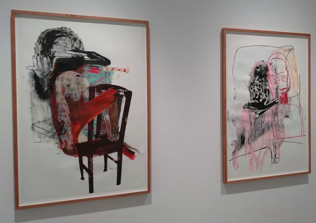 “Introspective in nature, Virginia Chihota’s work is deeply influenced by personal experiences – landmark and everyday. In a reflection on intimacy and the human figure, she has addressed themes such as childbearing, childrearing, marriage, kinship, bereavement and faith. At once mundane and transcendental, rife with allusions to everyday life, and religious and folkloric symbolism, her large works on paper display a raw, expressionist verve and a striking grace in the elaborate use of patterns, textures and layers.” She trained as a print maker, her use of screen-printing is rather intriguing, she’s doing things in a slightly different way. She mixes printing techniques with drawing to produce unique works that are indeed of “striking formal complexity”. These once again are bold pieces, especially the really big pieces in the street level part of the gallery.