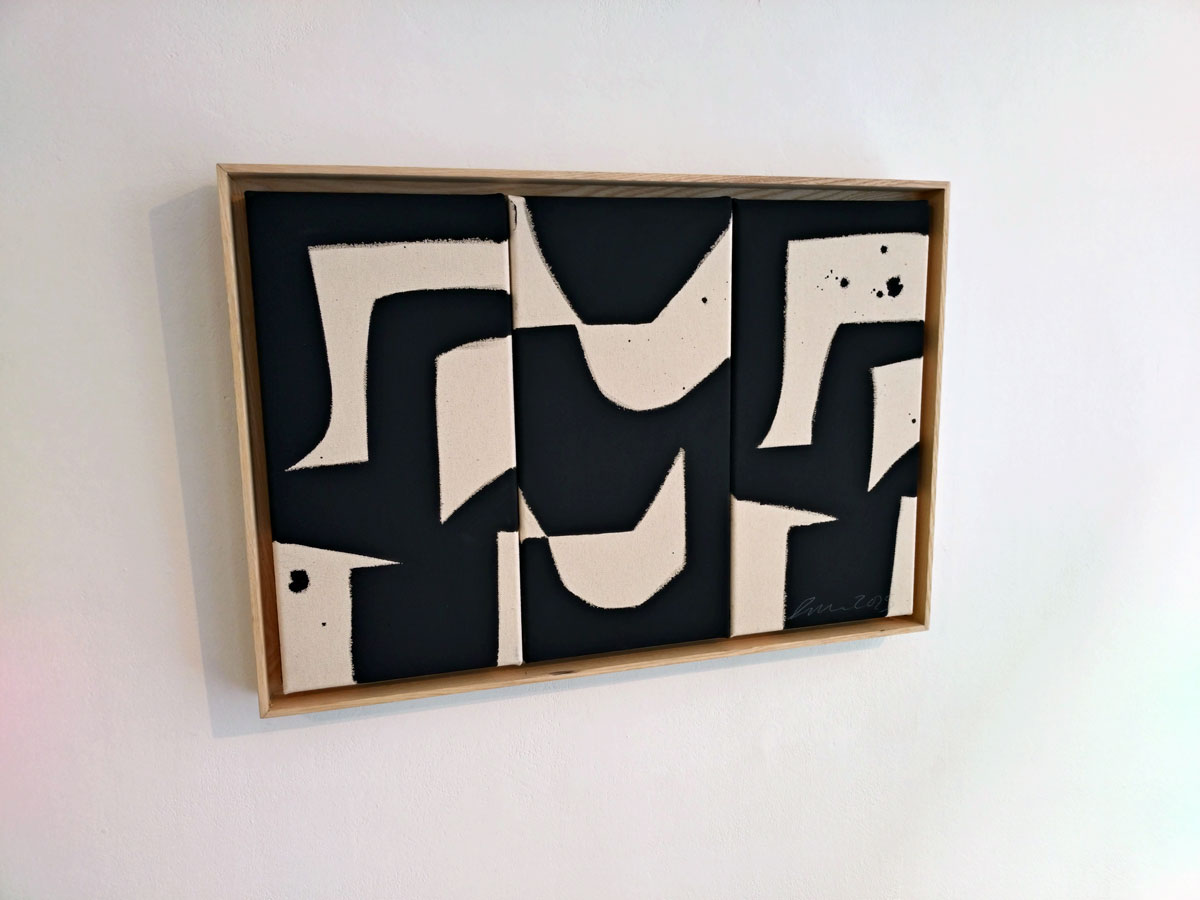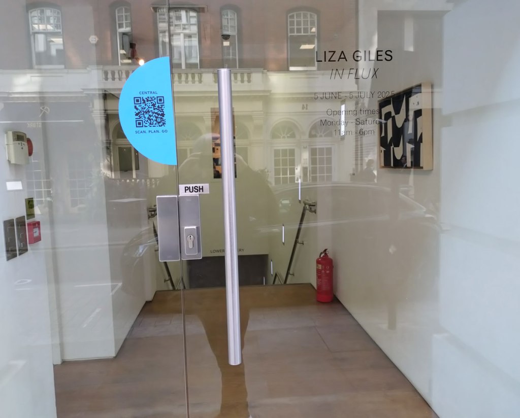 Does this latest exhibition from the artist feel very much like the last one we saw in the very same place a couple of years ago? This show, In Flux, we’re told, “is a solo exhibition of new works by London-based artist Liza Giles; The exhibition title reflects Giles’ process-driven approach, where the act of creation is continuously evolving and in constant transformation. Throughout her practice, Giles explores the tension between fluidity and control, presence and absence, capturing the dynamic, ever-changing nature of her work as it unfolds. This sense of flux permeates each piece, allowing the works to emerge organically, shifting and adapting as they progress” – and you know what, that loud phone call and the parking ticket saga really is making it irritatingly impossible, there is a mindfulness to the work of Liza Giles and the distraction really is annoying me far more than it probably should be, I’ll come back on another day. These shapes and compositions do rather intrigue, and oh well; “rather than offering fixed meanings, Giles’ paintings invite viewers to connect with their own responses, to feel rather than interpret”.