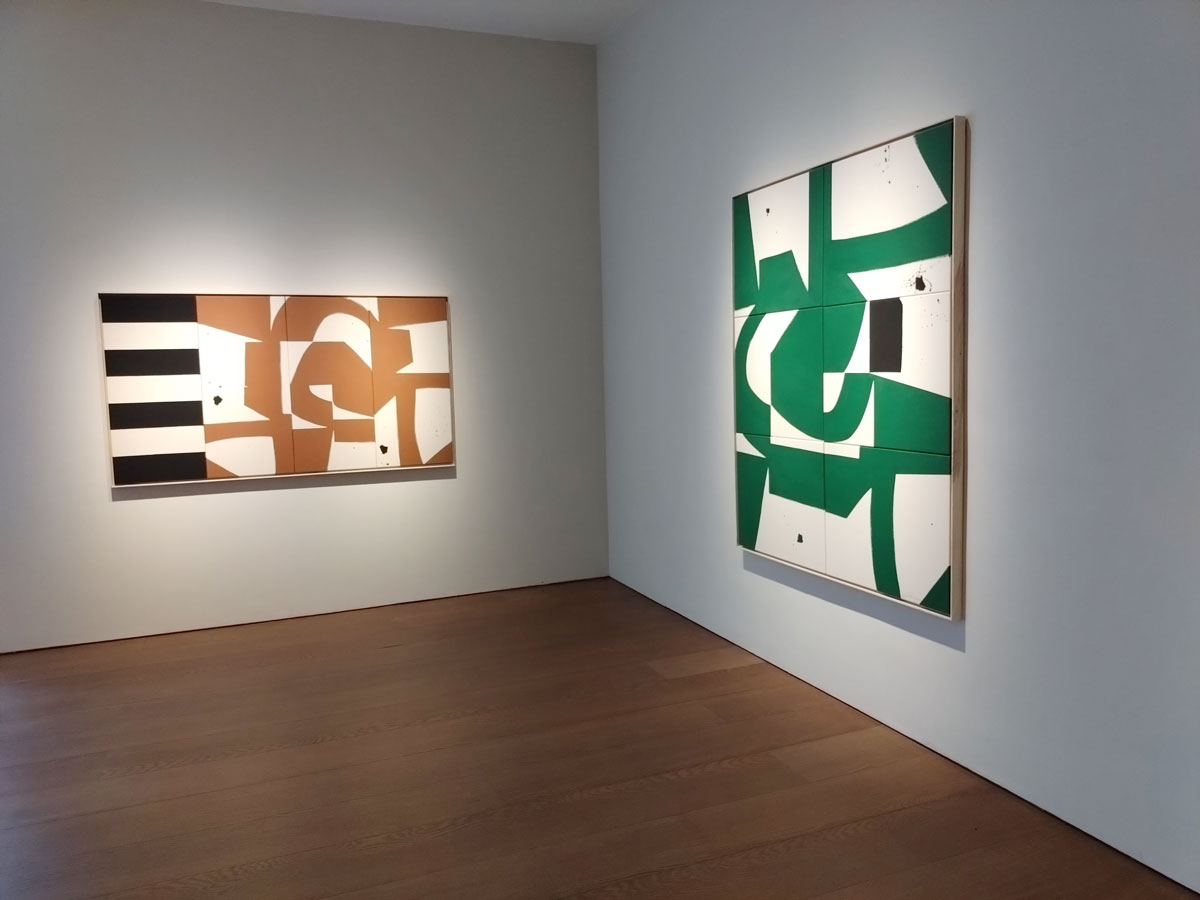 We never did get around to posting Part Five of the London Gallery weekend adventure, it feels like a lifetime ago now although I imagine most of the shows from that weekend are still open and as we have already said, in reality, it was pretty much just like any other London weekend of gallery exploring, just with the addition of a fancy blue sticker or two on a gallery door or two, that and lots of hype and self-congratulating celebration from an art establishment that doesn’t tend to want to connect with any kind of reality. As Sean Scully once said, the London art scene on the whole doesn’t know shit from shinola and as we often say, it isn’t that friendly either. We did leave Part Four of our London Gallery Weekend coverage halfway down Cork Street on the Friday afternoon and yes it was a couple of weeks ago now and we are tempted to just forget about posting the rest of it and get on with life. We left Part Four as we were just entering the Liza Giles exhibition at Flowers Gallery. The show had looked intriguing from what we had seen through the Window during the Wednesday night opening, we had resisted the temptation of going in right there and then in favour of a quiet first view on what would hopefully be a more peaceful Friday. I did find myself to be the only one in the gallery when I did finally venture in in the middle of the afternoon straight after the delight and the rather rewarding challenge of the Virginia Chihota exhibition at the always welcoming Tiwani Contemporary gallery, alas, the silence of Flowers is totally ruined by a very (very) loud Gallerina complaining (very) loudly on the phone about a parking ticket and the distraction is impossible to shut out. These Liza Giles paintings do seem to want to communicate, her colours, her shapes, her combinations and composition, the scale of the pieces, It all feels like communication and reaching out from the gallery wall rather than waiting for the viewer to take the lead in terms of the conversation. These Liza Giles pieces really do seem to want to take the first step.