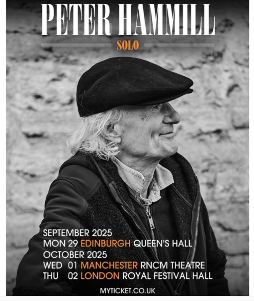 “Peter Hammill (Van Der Graaf Generator) will be performing three solo shows later this year, details of which are below. Currently working on a new solo album, we can also expect a major announcement in September”.
