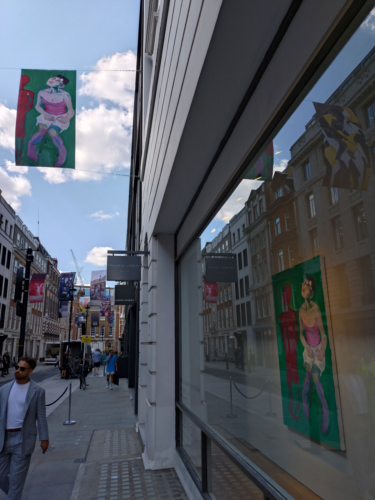 Yes, through Jones’ revealing portrayal of her own body she rather positively addresses a number of ideas with these pieces, ideas of femininity, of fragility, ageing and disability. I love these paintings, I love the boldness, the, well is it really defiance? These pieces do feel very personal, they do touch on the political and the “highlight society’s way of viewing difference in others”, they touch on more than that though, these are very human paintings, warm pieces, comfortable (when for some they maybe might not have been?). And I have been enjoying seeing that banner hanging above Cork Street this Summer, that was more than a good appetiser