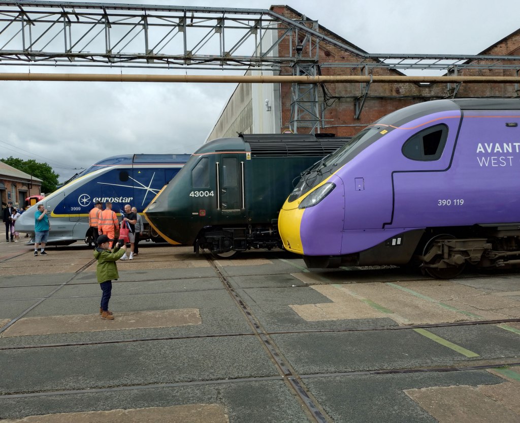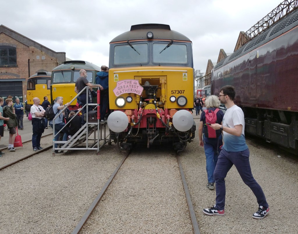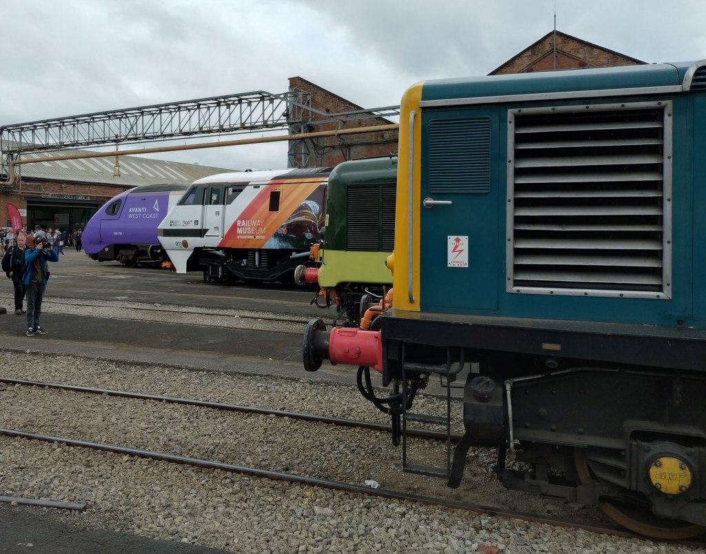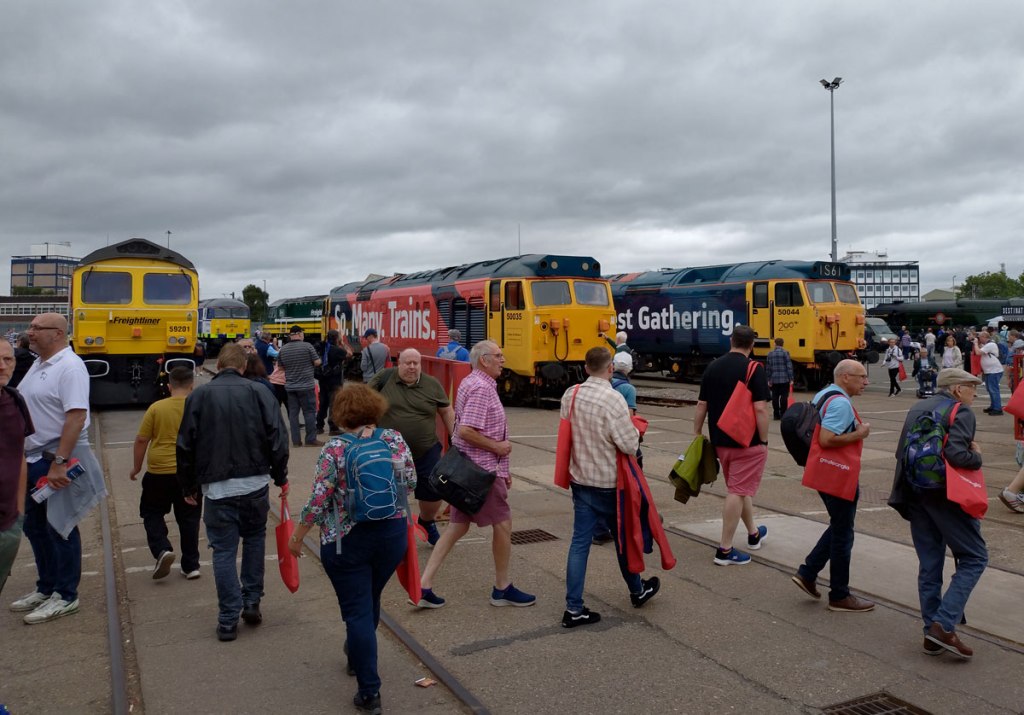 That’s right, this was a railway festival, easily the biggest ever, easily The Greatest Gathering ever and over three days around 40,000 people turned up in Derby to drool over all those locomotives and much much more. For three days people from all over the land and beyond these shores came to look at them, to listen to them fire up, to smell them, to photograph them, to stand in the rain surrounded by the smoke, to stand in the sunshine to just view that glorious line of Peaks and that Western on those curved tracks and yes, even the Sheds were appreciated (as was that gleaming new freshly arrived dark blue and golden yellow Class 99). Tickets sold out within hours, they could have held it for way more than just the three days but Alstom is a working industrial site, not some festival field or some heritage home for retired shunters. Alstom is a great big complexed forward looking modern still very much working railway factory, a very big site with a massive history and Alstom are hosting this probably never to be repeated Greatest Gathering across their massive site (apparently they were able to host it all during the work’s annual holiday two week shut down).