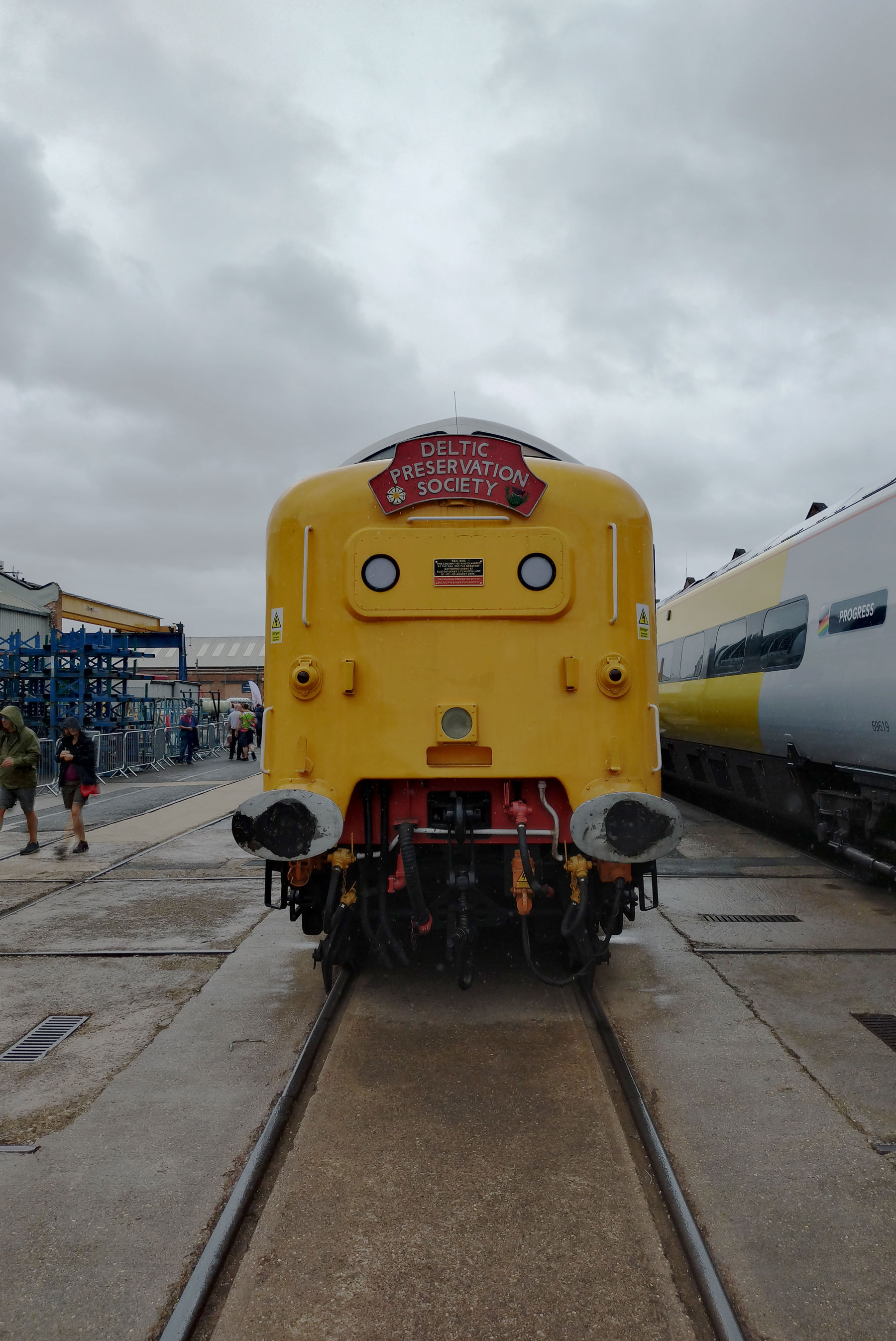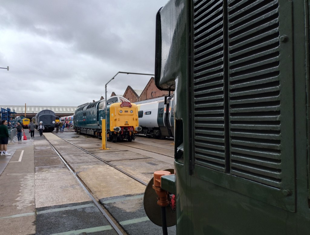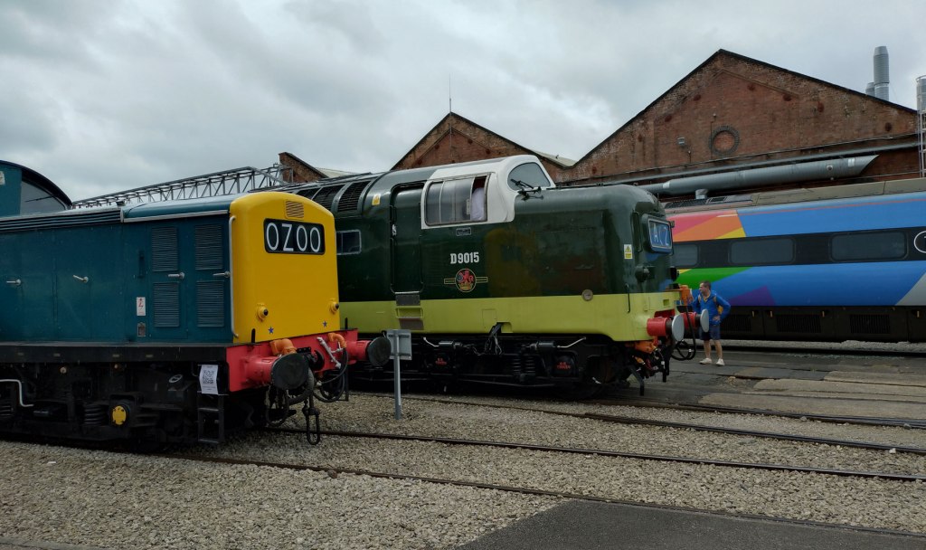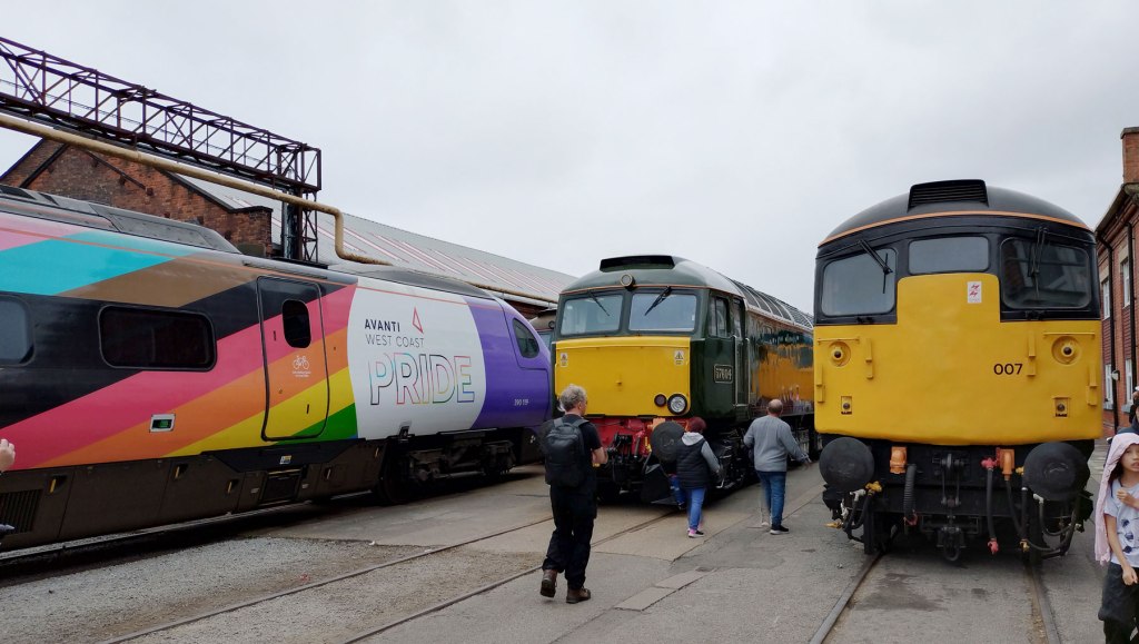 That’s right, this was a railway festival, easily the biggest ever, easily The Greatest Gathering ever and over three days around 40,000 people turned up in Derby to drool over all those locomotives and much much more. For three days people from all over the land and beyond these shores came to look at them, to listen to them fire up, to smell them, to photograph them, to stand in the rain surrounded by the smoke, to stand in the sunshine to just view that glorious line of Peaks and that Western on those curved tracks and yes, even the Sheds were appreciated (as was that gleaming new freshly arrived dark blue and golden yellow Class 99). Tickets sold out within hours, they could have held it for way more than just the three days but Alstom is a working industrial site, not some festival field or some heritage home for retired shunters. Alstom is a great big complexed forward looking modern still very much working railway factory, a very big site with a massive history and Alstom are hosting this probably never to be repeated Greatest Gathering across their massive site (apparently they were able to host it all during the work’s annual holiday two week shut down).