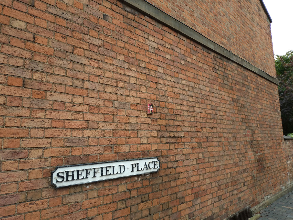 And yes, a 110th leaf of the year left hanging on one of those railway workers houses, a 110th #43Leaves piece of 2025 and one of thousands that have now been left hanging on waiting nails – always on nails, hooks or screws that are already there, no damage done, nothing disrespected – a leaf left hanging on one of the railway houses, one of five pieces left that day in Derby. As always, pieces painted on found unwanted recycled material picked up off the street. Material cleaned up, painted on and then left hanging back out there for people to just take should they wish to. This 110th piece of the year was left hanging on a nail waiting in a wall by these beautiful 1842 railway workers houses just over from Derby railway station. Apparently the building at the end of the unusual U shaped terrace was originally a pub and brewery, the railway is everywhere, so are railway pubs. Another piece was left on the severed head of a Class 37 locomotive that just happened to be hanging about in another pub car park just up the road (like I said, this town is seriously into trains, The Alexandra Hotel is dripping in trainery), this Greatest Gathering surely had to be here in Derby.