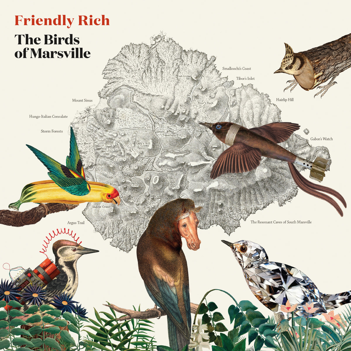 “Since the 1990’s Friendly Rich (aka Rich Marsella) has been gathering a cult following around his avant-cabaret song output, this time he dives headlong into something completely different. Wielding a custom-built orchestrion (a peculiar mechanical organ) made by the 88-year-old Henk Degraauw of Marsella’s hometown of Brampton, he has produced a concept album revolving around the avian population of an imaginary island and their songs. Not only does this make for all manner of bizarre lore, it also elicits some of his most inventive and potent music to date. Its pair of side-long suites are utterly singular and deliciously relentless, their episodic clangour and microtonal nuances hinting at Harry Partch’s music, with an eerie, impish humour that nods in the direction of the Residents or even Uncle Meat-era Mothers of Invention. While remaining decidedly unclassifiable, listeners might even hear agile keyboard-oriented proggishness to it all that might recall the dizzying phrases of Canterbury acts like National Health or Hatfield and the North”.
