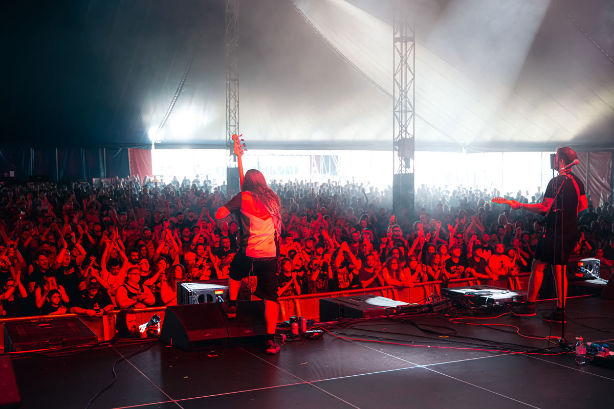 So now that the festival has ended and the field stands empty besides those big tents, who else grabbed us at ArcTanGent 2025? Well we already said we simply had to be there for Sleepytime Gorilla Museum, we went there for Kayo Dot, we’ve told you all that, we’ve written the great big review already and yes, it wasn’t just about Sleepytime and Kayo Dot, there were others who have regularly featured on our pages or airwaves, bands like Ni, Slift, Melvins, Godspeed and the names most will already know, then there were the bands we covered rather a lot in their early days; Mew, Vessels, Adebisi Shank and such and yes, there were bands that we polite choose to not cover that much. You know what the policy is around here, on the whole if we haven’t got something positive to say then we just don’t bother saying it. Then there were the bands and artists who, before this year’s ArcTanGent, hadn’t really crossed out path in any meaningful way, Bands like Love Rarely who quite literally grabbed our ears while we were passing and demanded we pay attention, or bands like Lowen who we didn’t actually catch but who’s buzz at the festival we most certainly catch. I’ve lost count of how many people have mentioned Lowen either directly to us or on social media since their performance at this year’s festival…