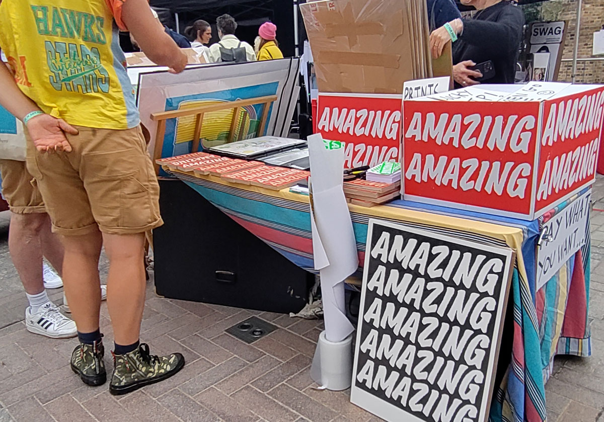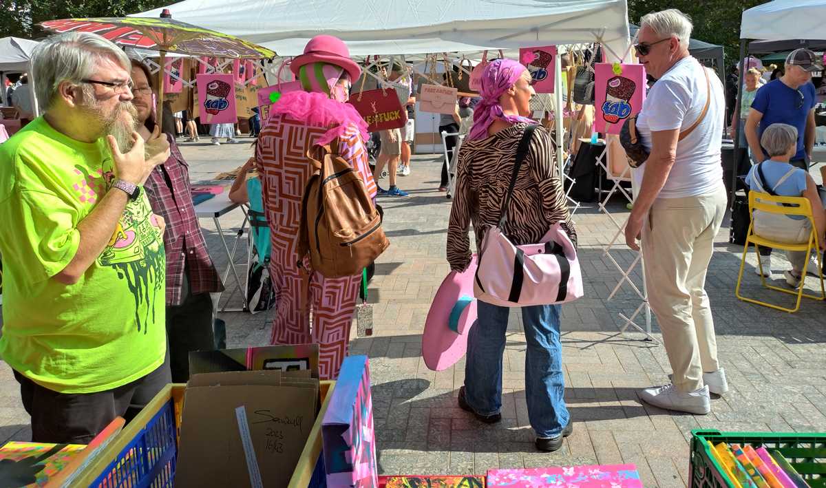 Karen Ashton, Founder of the Art Car Boot Fair says “This year’s theme ‘Art, Comedy & the Comic’ is all about celebrating the lighter side of creativity. In uncertain times humour is a powerful tool – and artists are the best jesters, critics, and storytellers around. Expect the unexpected”. The Art Car Boot Fair is art at its most alive (so it says here, did we say that? Is that an Organ quote, we have been covering the fair for years, for almost all of the twenty-one years it has been around now, we’ve taken part for most of them). Whether you’re a seasoned collector or a curious newcomer, the Art Car Boot Fair offers an unmissable opportunity to meet artists face-to-face, haggle for a masterpiece, and walk away with a smile –and something rare under your arm. We artists, well some of us at least, do like that face-to-face bit that is rather unique to the air, although I might argue there’s nothing funny about art.