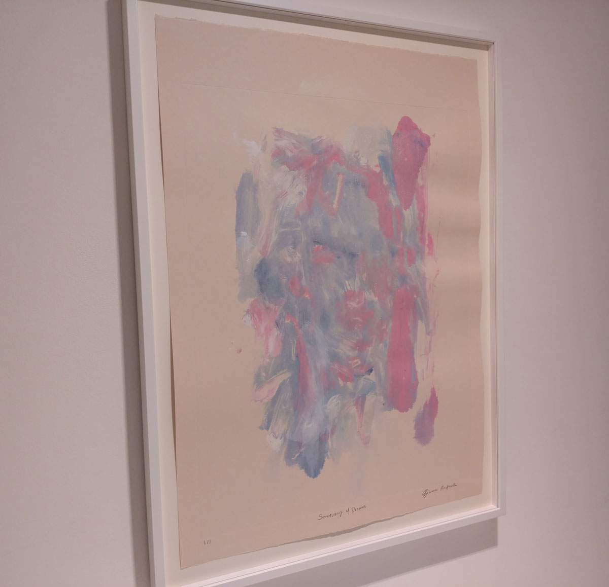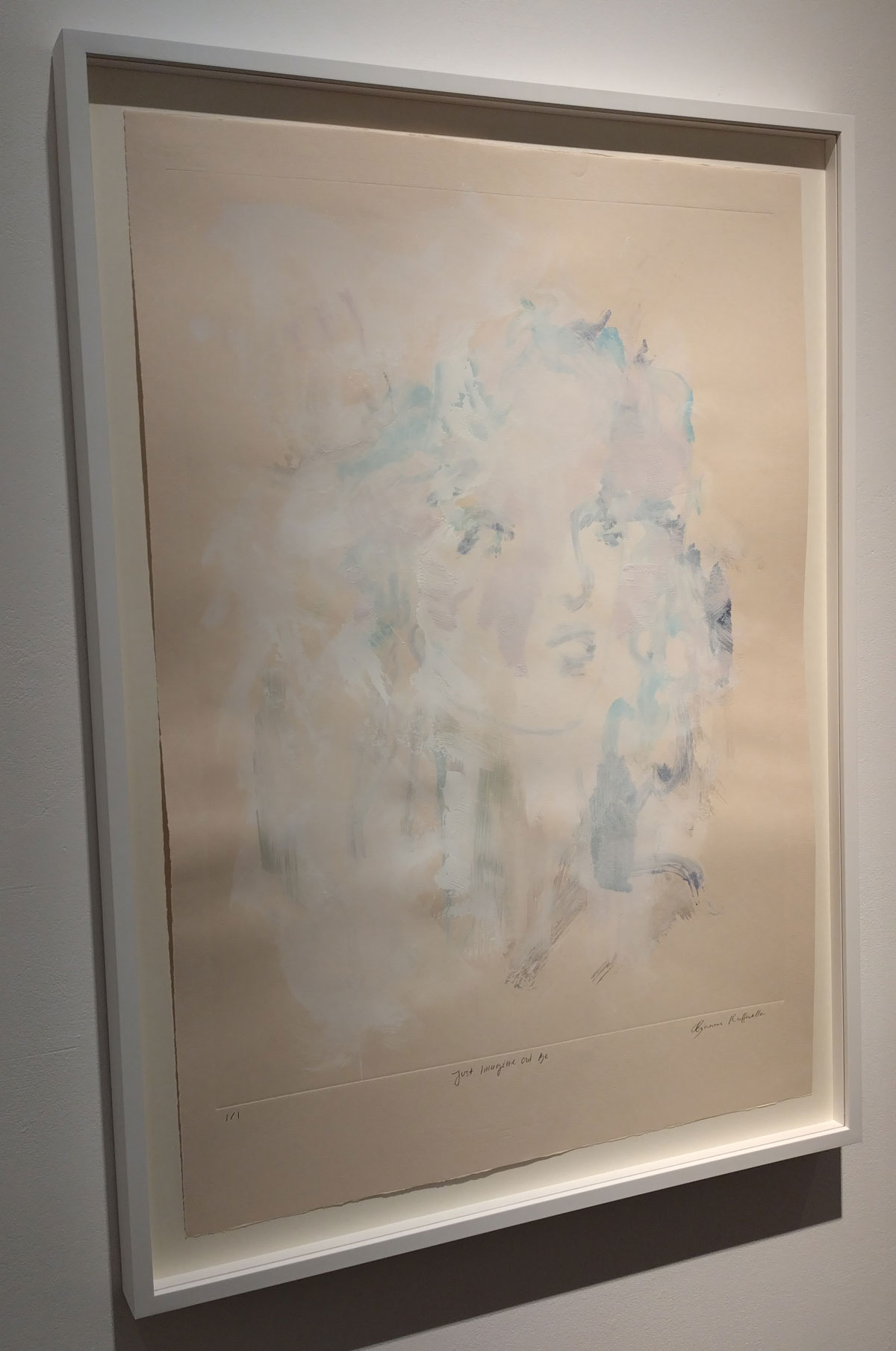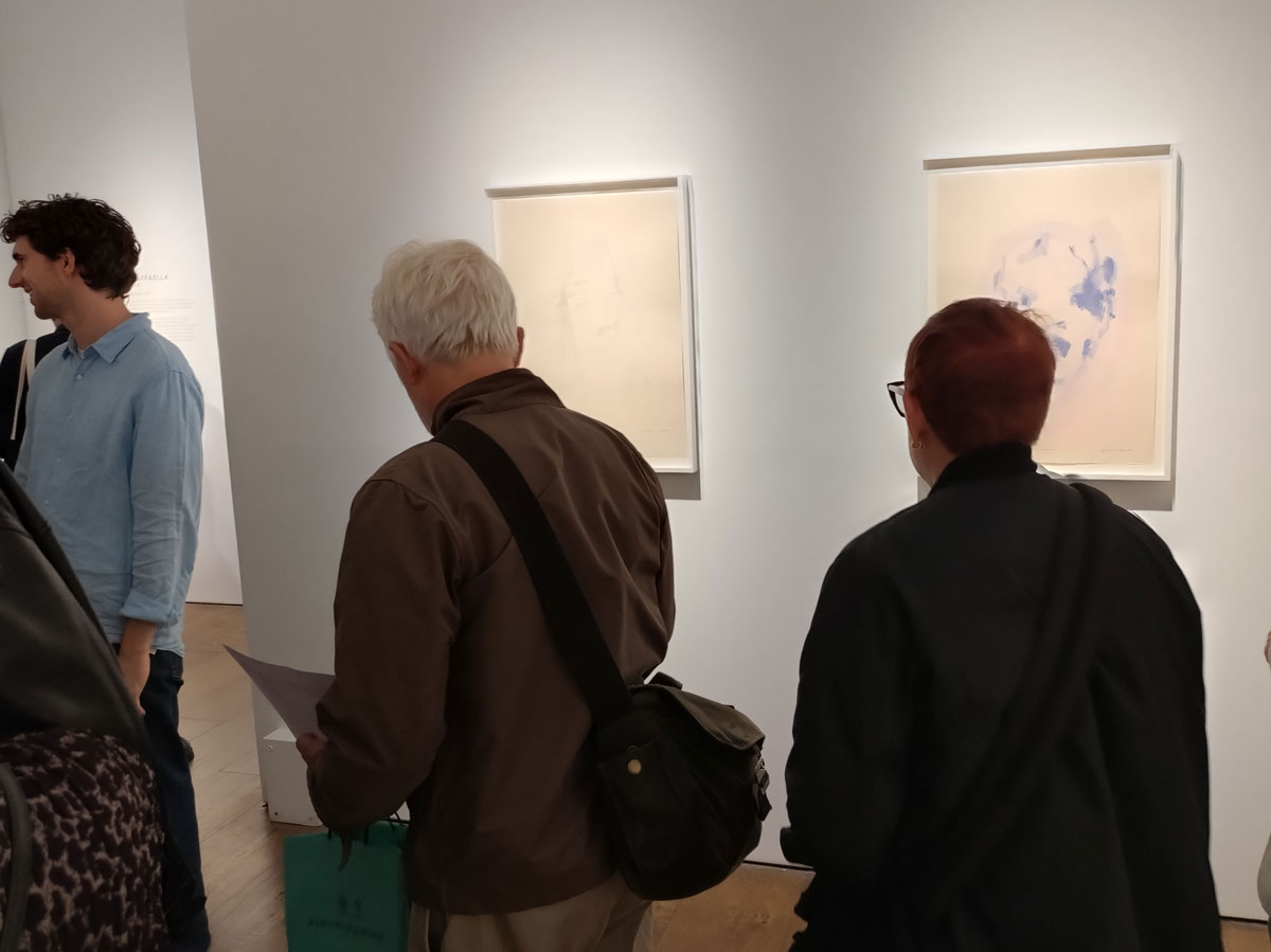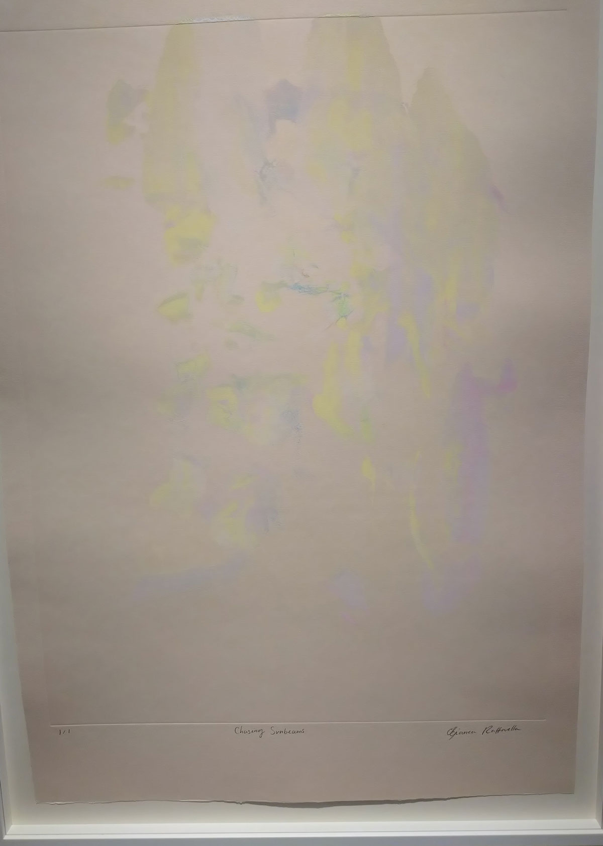 Her previous show was all about her big paintings, about seeing what Bianca Raffaella sees, about an experience that is almost impossible to share, an experience beautifully shared. This time she’s experimenting with monoprints, collaborating, well it looks more like a helping hand than a collaboration; “Following her first major solo exhibition at the gallery earlier this year, the latest presentation will see Raffaella build on the foundational themes of memory, perception, and fragility that anchor her practice. Executed in collaboration with master printmaker Richard Spare, these innovative works push the limits of traditional printmaking, using the under-explored medium of acrylic monoprinting. Working wet-on-wet with layers of acrylic and water, Raffaella paints directly onto reflective copper plates, primarily using her fingertips, before the surface dries, capturing fleeting impressions in quick, expressive gestures. This spontaneous, tactile process reflects her lived experience of visual impairment, translating uncertainty into a physical and creative act”