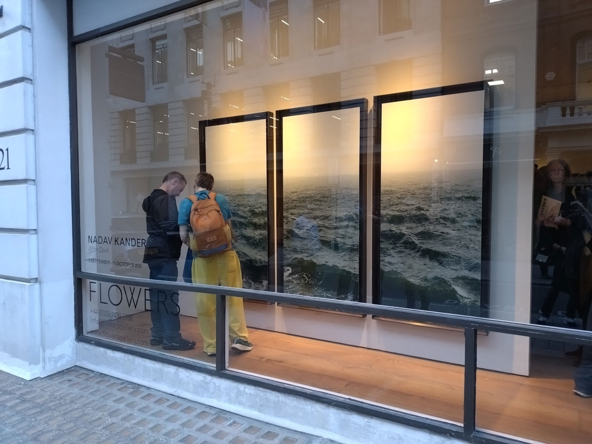 There is another opening at Flowers tonight; “Nadav Kander is a London-based photographer, artist and director renowned for his portraiture and large-format landscape photographs”, photography on the whole doesn’t excite me like paint does, the show looks interesting, it looks like an exhibition to be alone with and tonight for the open you can hardly get through the door let alone see the art properly or hear yourself think about it, a show to return to on another day. And off to the Kearsey and Gold and the opening at their Cork Street,gallery, the other space of the the many on West End street actually opening a show tonight, more in a moment, this is a non-stop (rather thankless) operation… (sw)