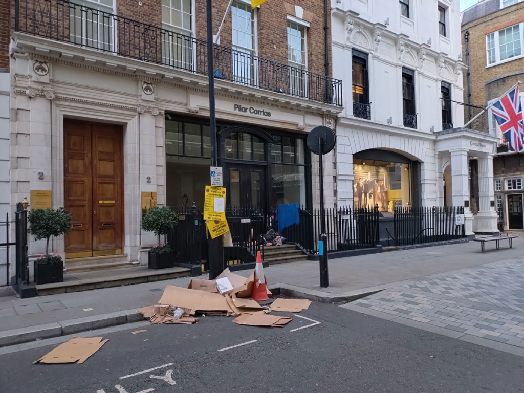Bianca Raffaella – She Cannot Fade at Flowers, Cork Street – September 2025 – Is that the slightest of hint of the London Art Scene stirring? We are just about entering September, the bigger galleries are staring to wake from their Summer hibernation, a hibernation that seems to have been reinforced by the lack of the strong alternatives and worthwhile artist led shows of previous sunny years. Most of Cork Street is still asleep or on holiday or running the shows they’ve been running during Summer months, the windows are covered in preparation for whatever comes next at the big Stephen Friedman space after that Jaune Quick-To-See Smith exhibition First Thursday evening of September, of Cork Street and the surrounding area, only a couple of galleries appear to be open tonight, the homeless are making good use of a few of their doorsteps, there’s someone trying to get some sleep under one of those flags that people seem to be rather proud of at the moment.