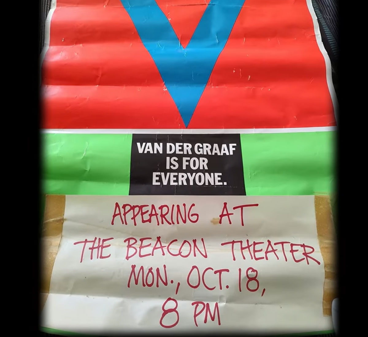 “Earlier this year, I put together the Toronto ’76 film of Van der Graaf Generator performing at Massey Hall. That film was very popular with the band’s worldwide fanbase and was also the first live concert footage ever seen of Van der Graaf during the World Record era. I’d been in touch with Peter and the rest of the band throughout the making of that short video. Impressed, Peter gave me some silent footage of VdGG’s one and only U.S. concert of the 70’s – NYC’s Beacon Theater, October 18, 1976. This was given to him by an anonymous fan years ago (we still don’t know who it was) and comprised short clips of the group performing on stage, ranging from a few seconds to about 20 seconds per shot. In discussion with Phil Smart, my co-author of Van der Graaf Generator – The Book, we decided it would be nice for me to make a short film of those clips fleshed out with commentary from the band (which I had recordings of from my The Book sessions) – a sort of mini-documentary. I then saw a five-year-old comment posted on a YouTube clip by a fan named Bill Wilson who stated that he had silent footage of the ’76 Beacon Theater concert. I tracked Bill down and he graciously donated his footage of the gig, shot by his (at the time) 14-year-old self. He then told me that one of the friends he went with, John Adams, also shot footage. John also donated his digitized reels and I suddenly had three sources of film to synch up with audio. Now with a substantial amount of concert footage, the project became much bigger in scope. I decided to track down fans who were at the NYC ’76 show and ask them to record their recollections. The resulting film is a combination of extremely rare concert footage, concert audio from the Beacon Theater gig, rare still photography, commentary from fans (audio and written), commentary from VdGG crew members, and audio commentary from the band themselves. Finally, I should say that the Beacon Theater ’76 audio has been my absolute favourite VdGG concert recording for several decades, since I was a kid in high school. The band seemed crazed that night, teetering on the edge but never going over. The chaotic element almost veers into punk territory at times and is a joy to listen to. Now, it is an even greater joy to see it. I never thought I’d view footage from this concert, much less have the privilege of working on it. To say it’s been a wonderfully surreal experience is an understatement. Time machines don’t exist, but this is as close as one will come to experiencing “what it was like” on that October night back in 1976”. Jim Christopulos