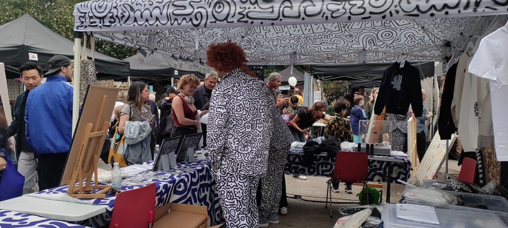 Art Car Boot Fair – Comedy and the Comic – Cubitt Square, Kings Cross, London, 20th September 2025 – And so what of this year’s fair? I reckon to have taken part in something like thirty of these Art Car Boot Fair events now if we’re to count the adventures by the seaside in Margate, Folkestone, Hastings and such, if we’re counting the side events in Liverpool or at the Apple Cart Festival or over in the Olympic Park or that time out in a forest in Sussex with Pussy Riot and such. Included in that thirty or so is me taking part as a participating artist in every single annual London Art Car Boot Fair main event since 2009 and before that first invite to take part, writing about the very early London ones for various versions of Organ, including covering the very first one that ever happened. If I have it right the first one was in Brick Lane back in 2004? What I am trying to say here is that I have pretty much seen or been involved in them all! And having been at or been involved in pretty much all of them, I can say that this one, twenty-one years on from the very first one, was a particularly good one, it was probably the best since it all moved to Kings Cross. No probably about it, it was easily, almost defiantly, the best since Kings Cross first became the Art Car Boot Fair’s home something like six or seven years ago now…