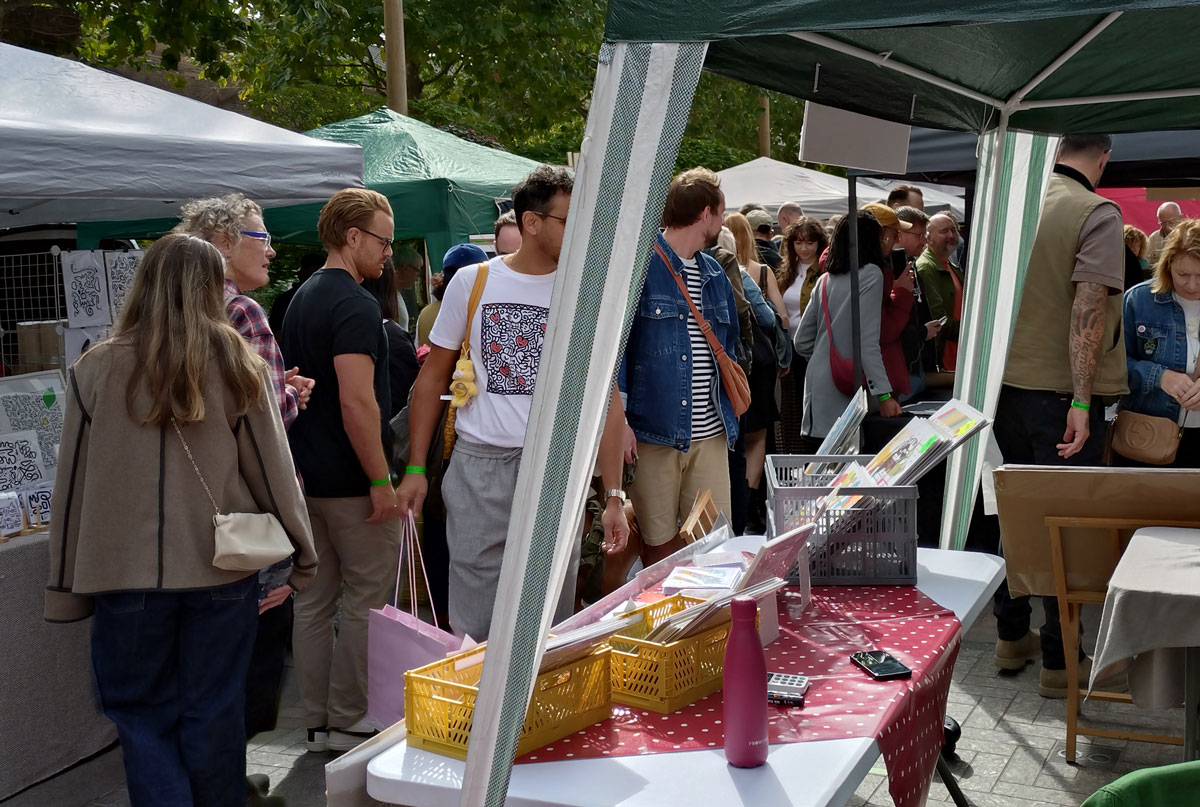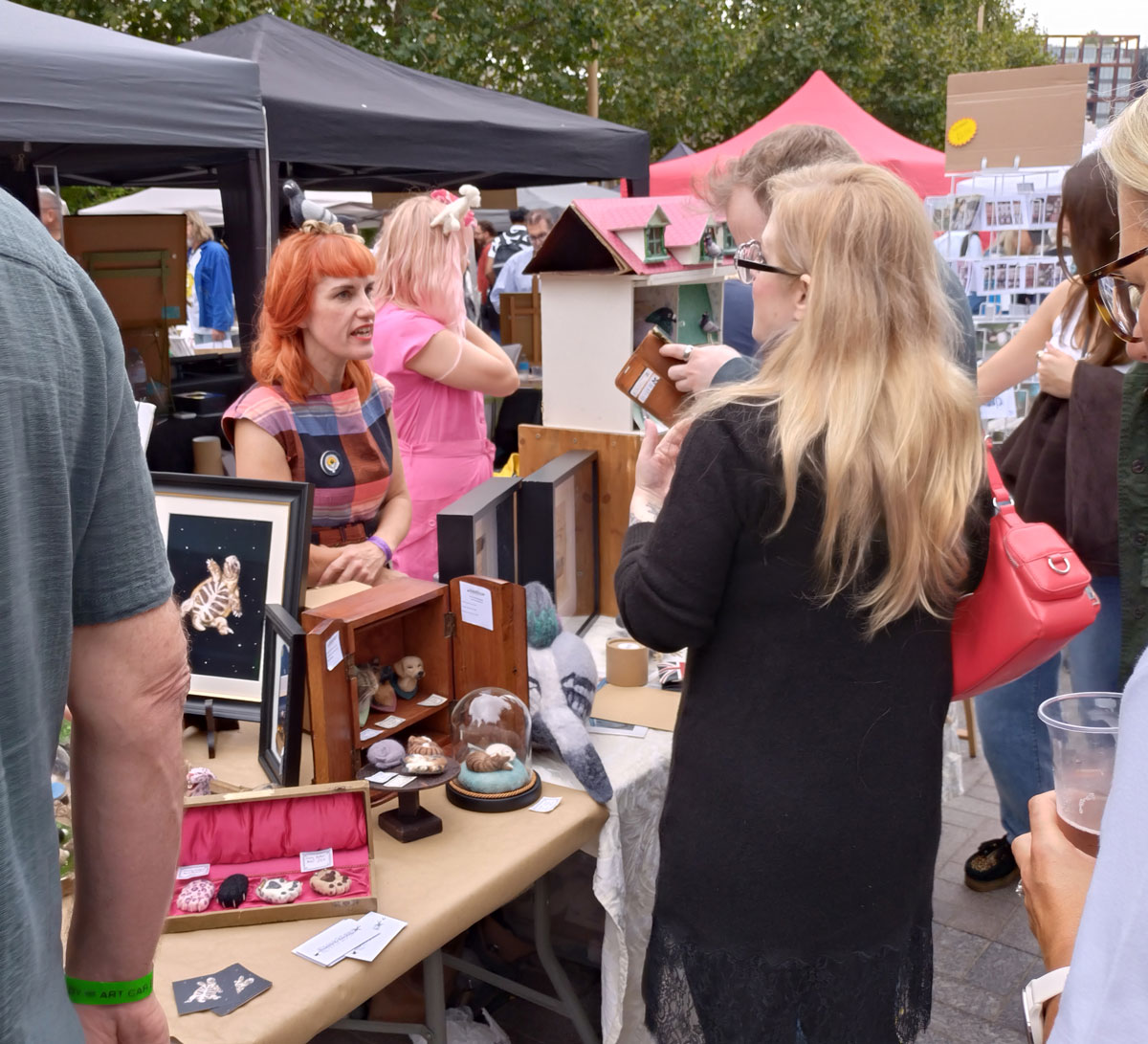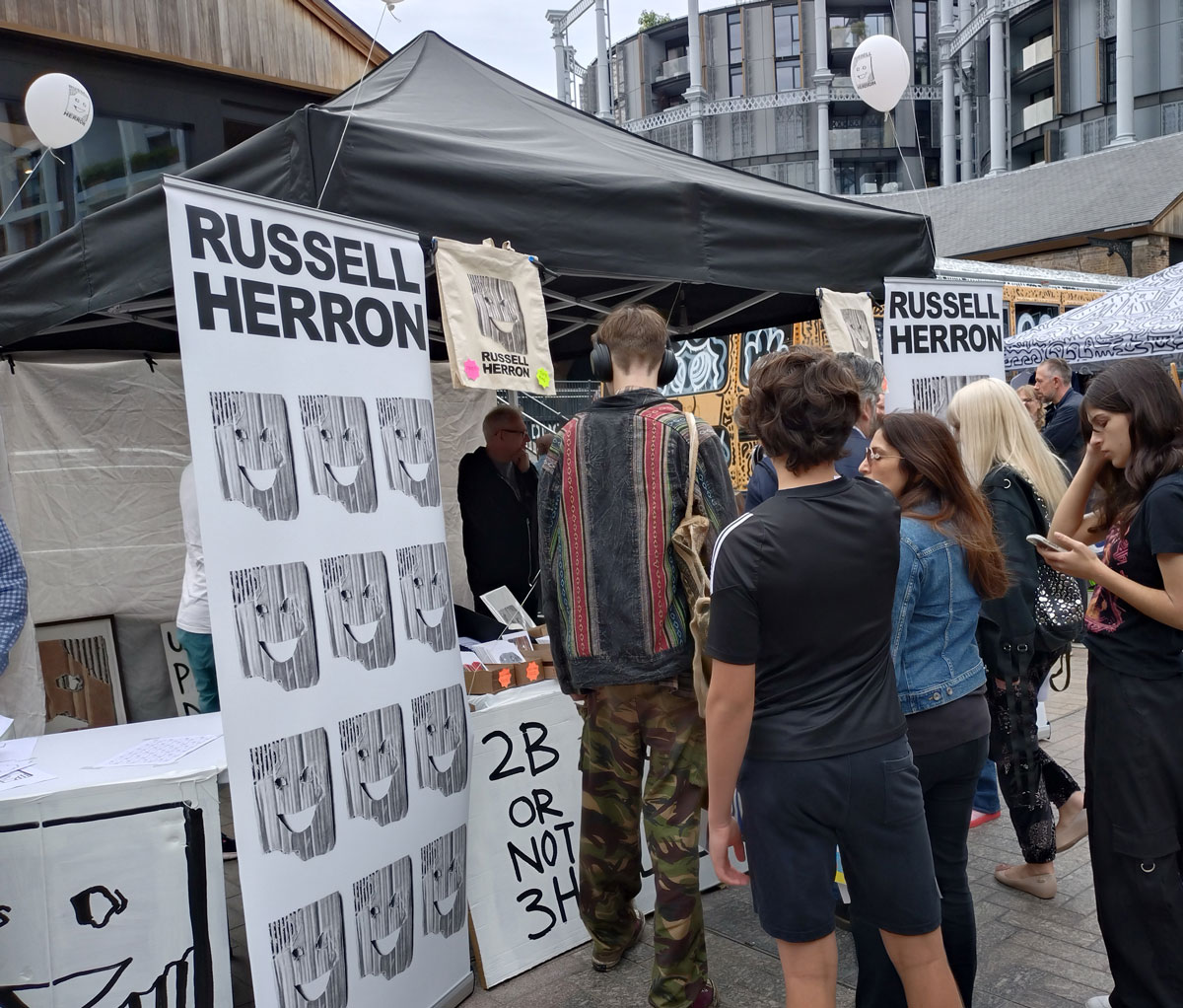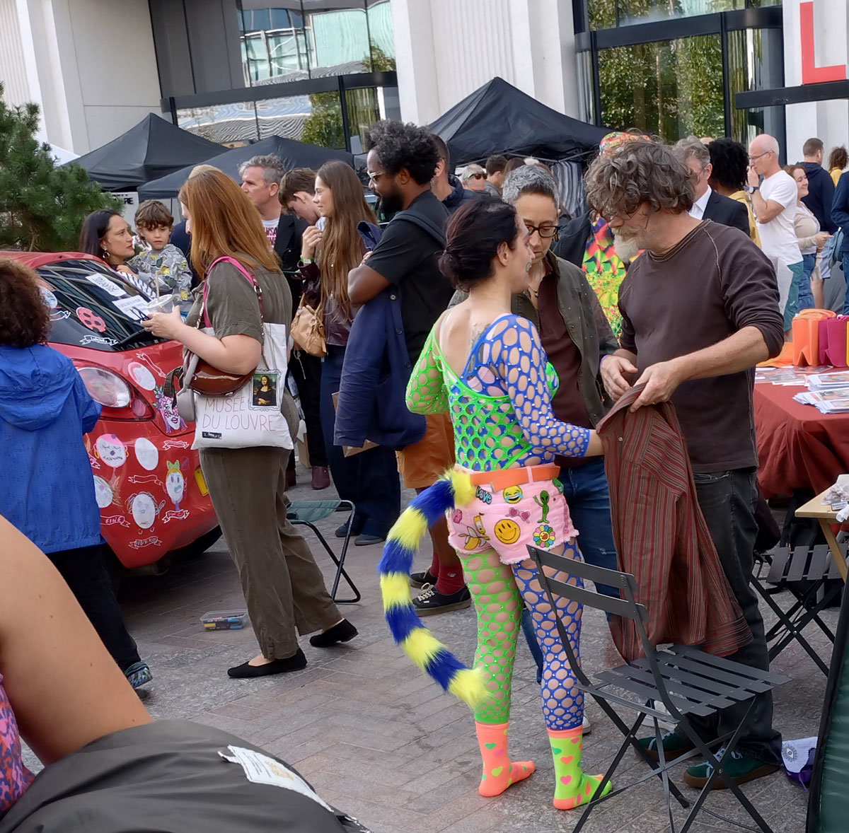 Art Car Boot Fair – Comedy and the Comic – Cubitt Square, Kings Cross, London, 20th September 2025 – And so what of this year’s fair? I reckon to have taken part in something like thirty of these Art Car Boot Fair events now if we’re to count the adventures by the seaside in Margate, Folkestone, Hastings and such, if we’re counting the side events in Liverpool or at the Apple Cart Festival or over in the Olympic Park or that time out in a forest in Sussex with Pussy Riot and such. Included in that thirty or so is me taking part as a participating artist in every single annual London Art Car Boot Fair main event since 2009 and before that first invite to take part, writing about the very early London ones for various versions of Organ, including covering the very first one that ever happened. If I have it right the first one was in Brick Lane back in 2004? What I am trying to say here is that I have pretty much seen or been involved in them all! And having been at or been involved in pretty much all of them, I can say that this one, twenty-one years on from the very first one, was a particularly good one, it was probably the best since it all moved to Kings Cross. No probably about it, it was easily, almost defiantly, the best since Kings Cross first became the Art Car Boot Fair’s home something like six or seven years ago now…