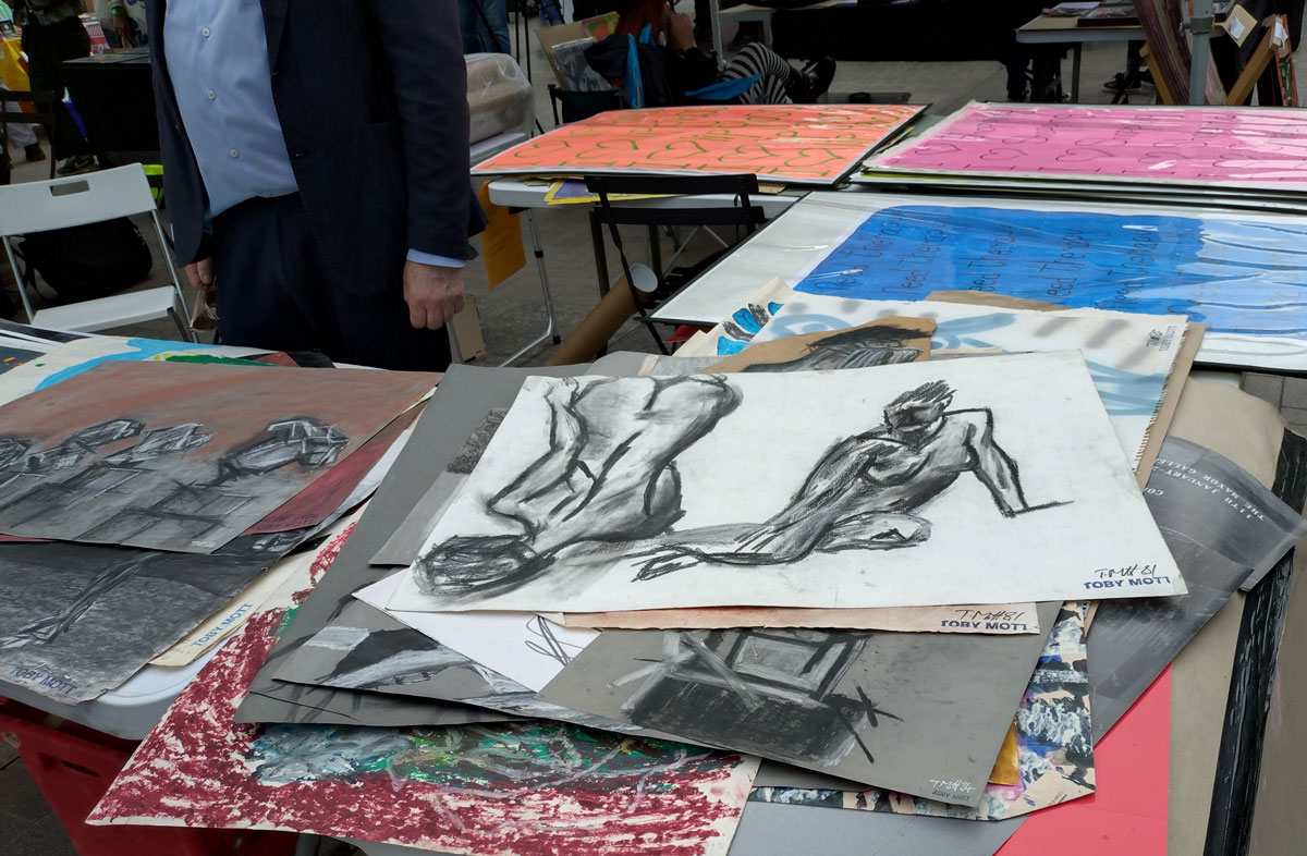 I must confess I wasn’t really looking forward to this year’s Fair, I wasn’t feeling that buzz I almost always have in the lead up, I wasn’t excited about making art for it, I really wasn’t expecting much, I wanted to just get through it, to almost get it over with. I certainly wasn’t up for comedy! Happy to report this year’s Art Car Boot Fair was a rather good one, it was certainly the best since we all moved to Kings Cross, it maybe even managed to touch on the early days without ever needing or trying to. Yes it was good back there in the early days but this is about now, the Art Car Boot Fair is about now and right now we need things like the Art Car Boot Fair even more than we did back there. Hey, what with everything that’s going on (or not going on) with the London Art Scene, with London itself, with life on the whole, we probably need the Fair more than ever and yes, this year really was a really good one! This year was probably the best one for years, it felt upbeat in the right way, upbeat in an almost defiant way, not in a crass way. if felt defiant in a we’re still here kind of way, it was less of the flippers and the flipping and more about the love of art really, it got a bit of the spirit back, that mojo… And then we had to go home and turn on the news again, it was fun for an afternoon though, yes, that was a particuarly good one, never to be taken for granted, Saturday was good day… (sw)