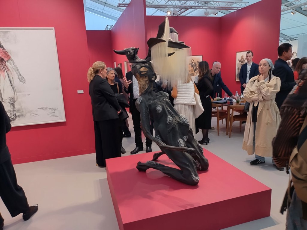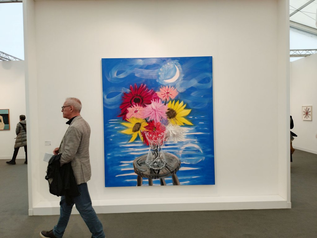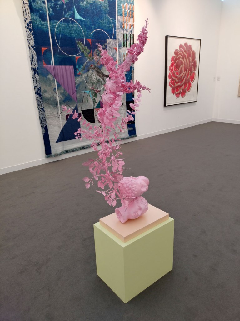 Not sure what is to be made of that pink leaf/flower piece, does it look like something you’d find in the flowering arranging department of Harrods? It is actually front and centre in the Casado Santapau (Madrid) booth. Shall we continue this with Part Four? We are about four hours in now, I think we’re having fun, is art ever fun? More fun with Part Four in a moment. all the fun of the fair… (sw)