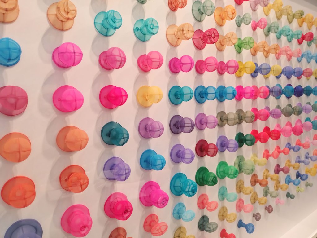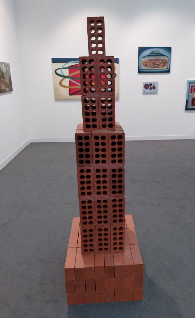Part Three? We’ve just gone past that green neon piece, the “Things” piece, shall we go on? Did you read the first two parts first? Ir probably would make sense, that’s if any of this does? Part One is here. Part Two follows it here, welcome back my friends to this thing that probably never ends. Thankfully there aren’t too many neon words or pieces at this year’s London leg of the giant Frieze monster, we seem to have mostly got over that neon thing now. There are some strange ‘things’ in here though, what is that big Sgt Pepper album cover doing over there? Did it have a point to make? Are these galleries just  playing to the tastes of the tasteless rich? To those who can just buy these ‘things’ like they but watches or sports cars, without much thought or question, for those who just like their cheese extra cheesy? Dread to think where most of this art will end up, on who’s walls? There really are some things in here I wish I could un-see. There’s a lot of playing it safe, there’s a lot of ‘things’ my mum might like? “Why can’t you make nice art like that?” she’d say, anger isn’t really an energy she’d say. Oh and there’s a pile of house bricks! Neatly stacked house bricks, another stack of bricks? Another Sgt. Pepper piece of fan art, another soup can, actually we were spared the soup can this year (unless I missed it, I probably did?)