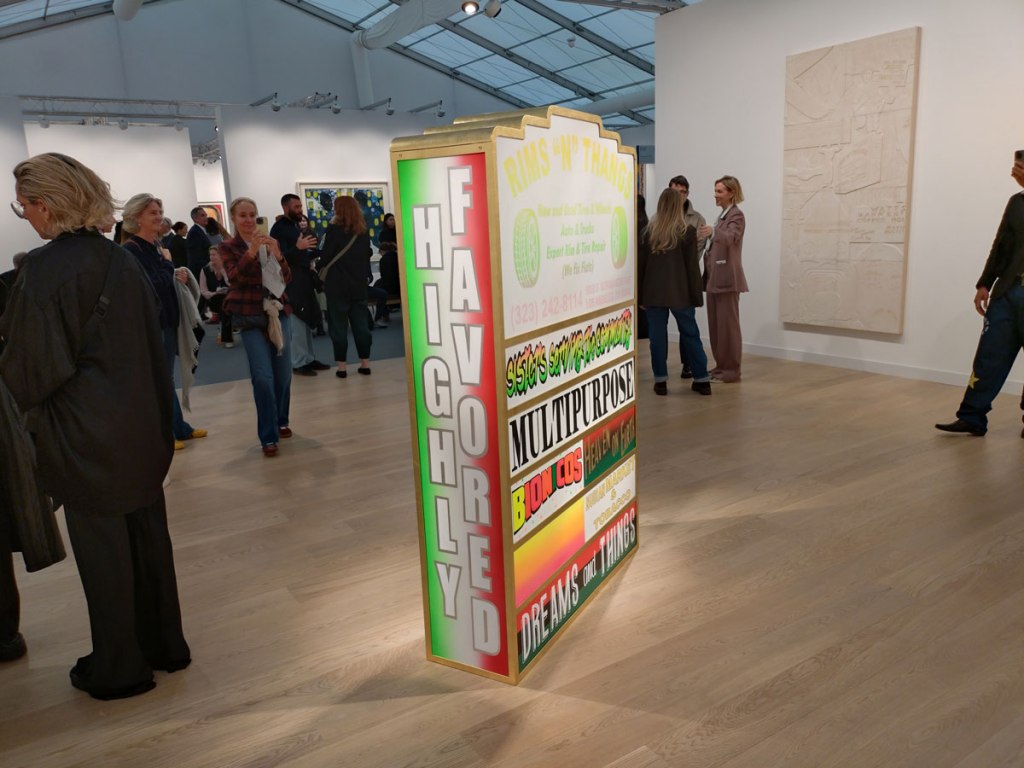 2. […] 3: Lauren Halsey – I almost don’t want to say it about such a part of the establishment gallery (or operation, they are far more than just a gallery now) but what a great big relief it is to to get to the big Gagosian booth and at last find a bit of attitude, a bit of a challenge, a bit of bite, a bit of something. I guess Gagosian don’t have to play it so safe, then again, I do believe the were the first gallery to declare their booth a complete sell out (although once again, who buys it? Where does it all go? It isn’t always that black and white is it?).  Gagosian are presenting “new works by Lauren Halsey at the 2025 edition of Frieze London. Born in South Central Los Angeles and based there, Halsey is known for large-scale works and immersive installations that draw on the histories, architecture, social contexts, and vernacular poetics of her community” – – The Fair itself Part Three; Lauren Halsey brings a bit of attitude, a bit of a challenge, a bit …   […]