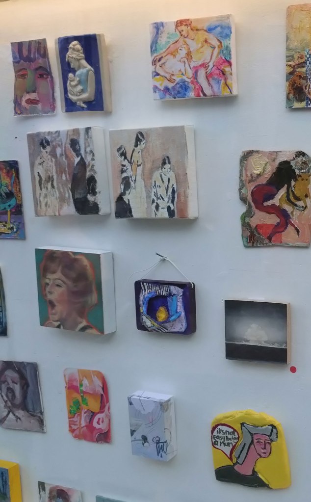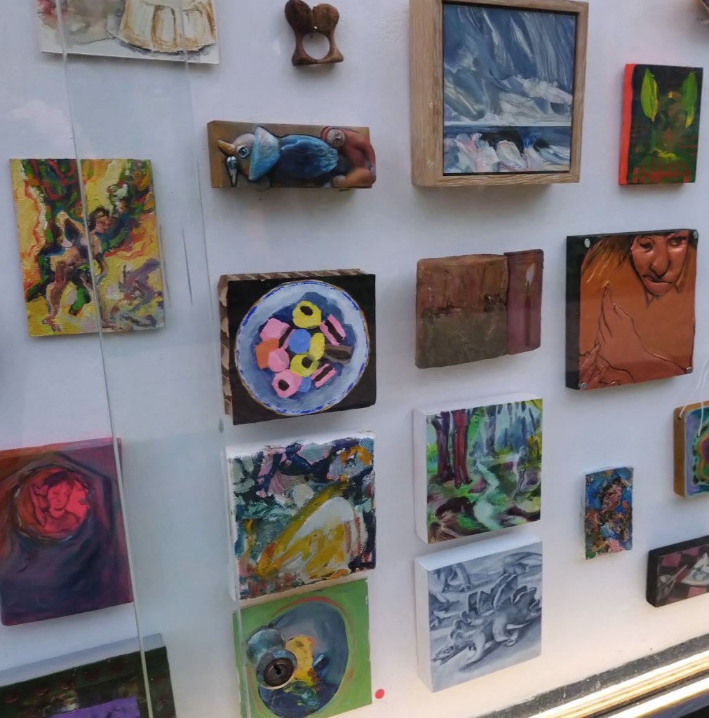I mean squeezing over a hundred pieces in there was ambitious, although it has to be said, it didn’t look overcrowded, it looked like a well put together well hung show, plenty of space for each piece not to be competing with the voice of the next one. An open call show (and yes, I have my own issues in terms of curators and galleries who demand a fee from an artist just to make an e.mail submission to a show, personally, as a working artist, I refuse to make submissions to shows that demand a submission fee, it is well documented on the Cultivate website, we won’t go there again here). This is a surprisingly good show, the fact that the art is good was rather expected, quality has been high with Canalboat Contemporary, we haven’t seen a bad show on the side of the boat, it is about the whole thing as one whole though and as one whole thing then Miniature Masters really works, the standard across the the whole thing is high. I must admit I was expecting it to be a little more hit’n miss a few more highs and lows, it was all rather strong and I really don’t want to pick out individual pieces, I don want to cherry pick (although the Licorice Allsorts made me smile). There were lots of strong paintings, strong painterly pieces, many highlights – you can still view most of the pieces on the gallery website. The Canalboat Contemporary boat and the shows have been one of the real positives in terms of artist-led activity in London this year, we look forward to the next shows… (sw)