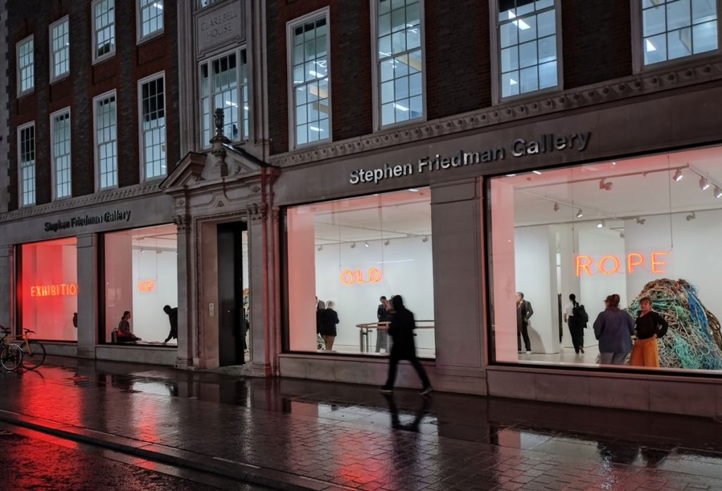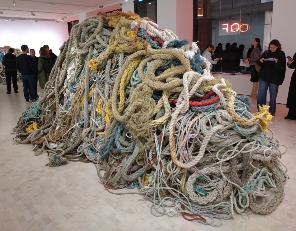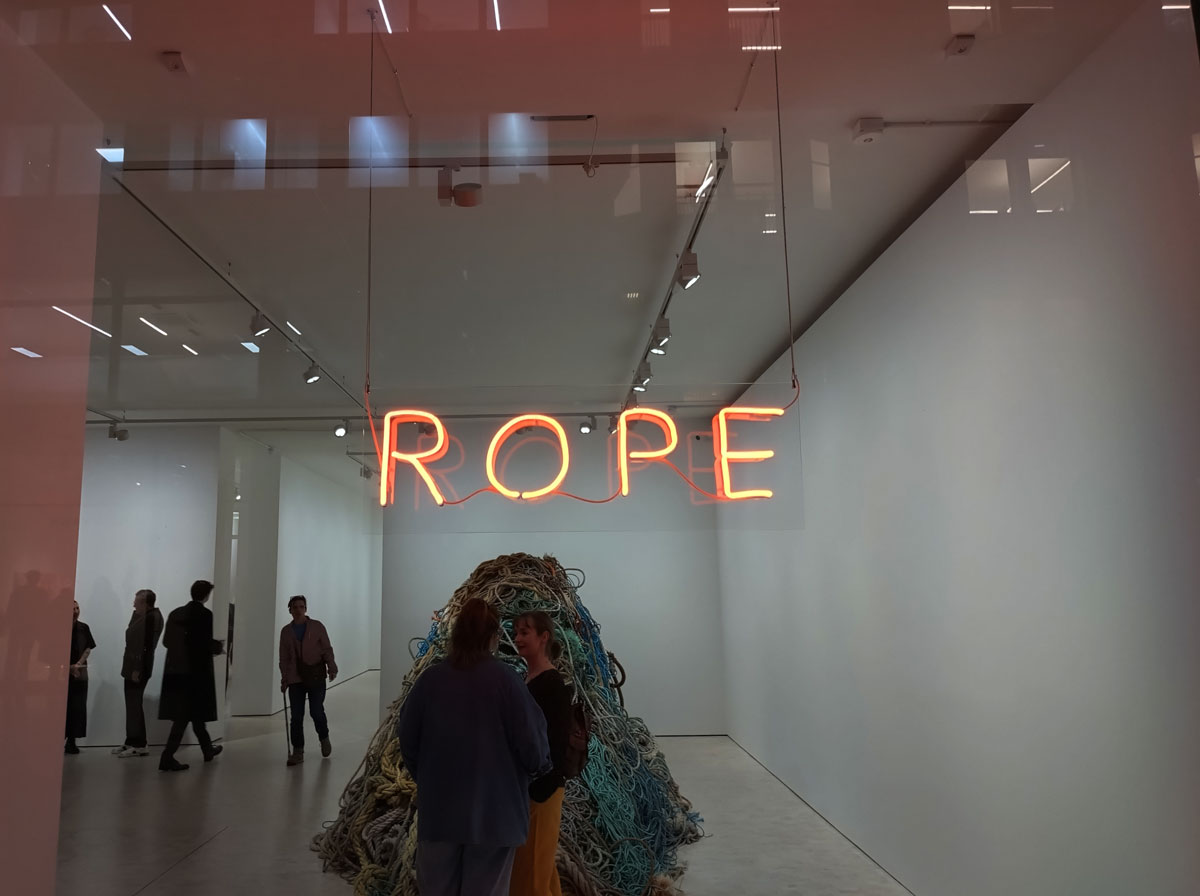 “We are pleased to present David Shrigley’s ninth solo exhibition with the gallery, Exhibition of Old Rope, marking over twenty-eight years of fruitful collaboration with the celebrated British artist. Expanding his conceptual practice, Shrigley showcases a 10-ton installation made entirely from discarded rope and a large-scale four-part neon”.