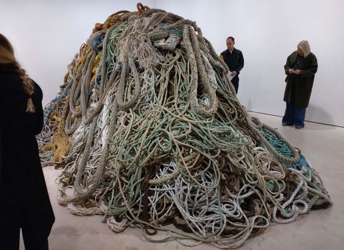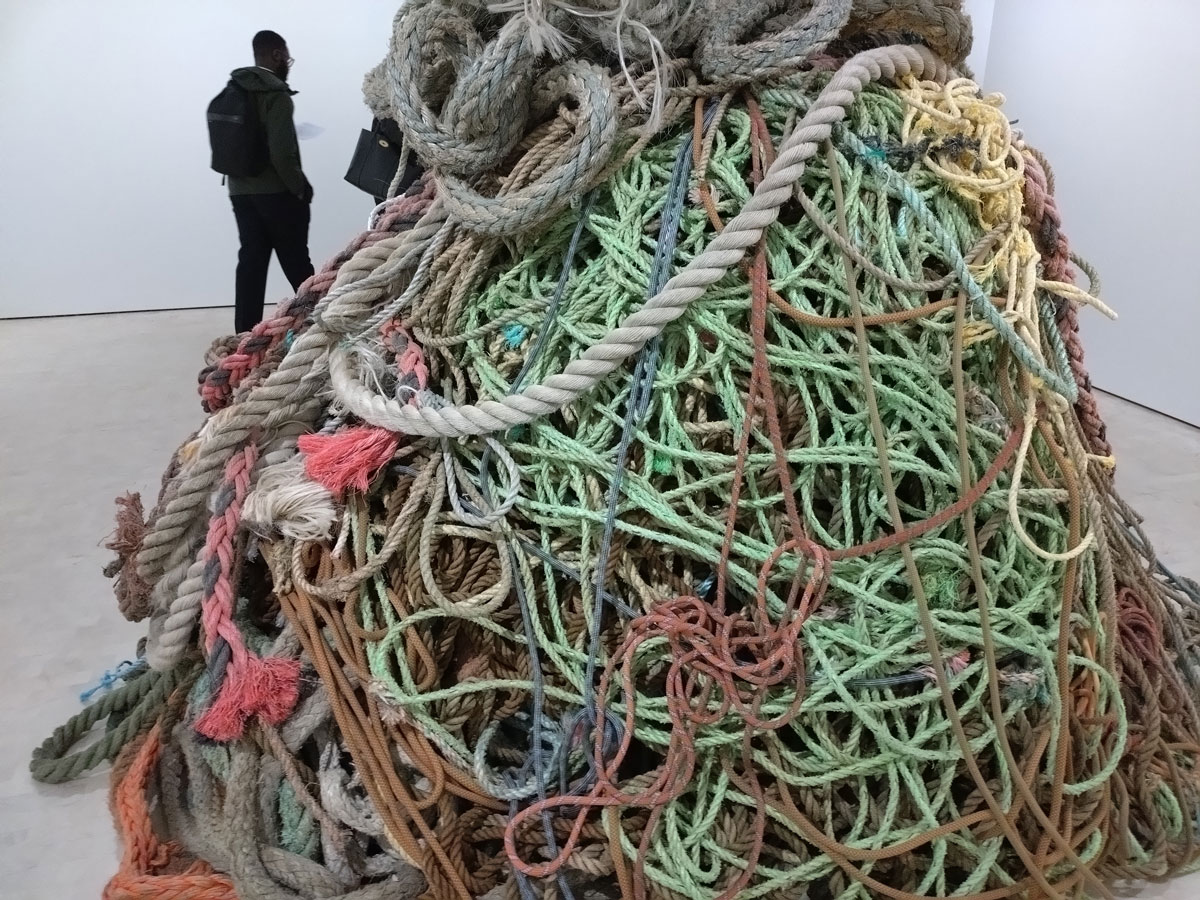 So more art that’s about the value of art then, is it really actually nothing more than another rotten banana taped to a wall? I guess it really is about what you make of it and yes he is laughing at us as we walk around it, and yes the art world at this big end of things is obscene, it ridiculous, it is almost funny, and yes he’s laughing at the big money, taking the piss, he’ probably has ‘nailed it’, and at the same time there he is mocking me, laughing at me, laughing at me for coming out on a cold wet Thursday night to walk around his piles of old rope.