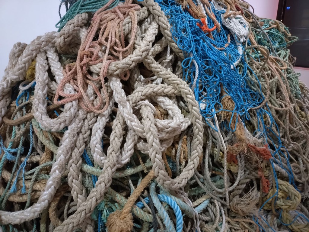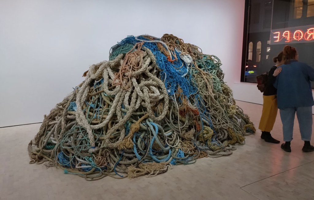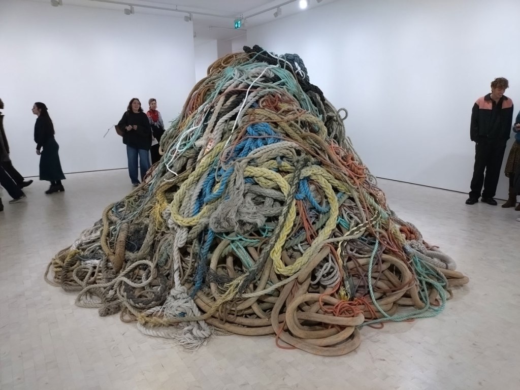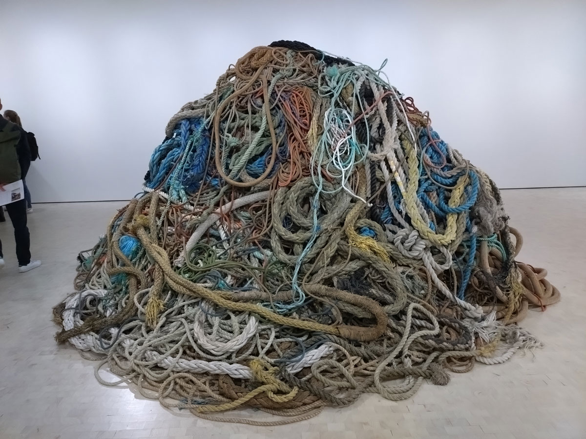 Thing is, I really liked it, I really enjoyed walking around it, looking at it, considering it, the layers of rope piled on more pieces of rope, the texture, the weathered colour, the reverence of it all, the visual threads rather than the conceptual ones, the history in each piece, the hands that have pulled on that now unwanted piece of rope, the (accidental) comments about how we waste so much, it could have been piles of rope, it could have been bits of wood picked up off the street to paint leaves on, it is a lot more than just piles of cleaned up odourless rope, I like it. I guess I missed the point, I guess is was all just about money for old rope and him having a giraffe…