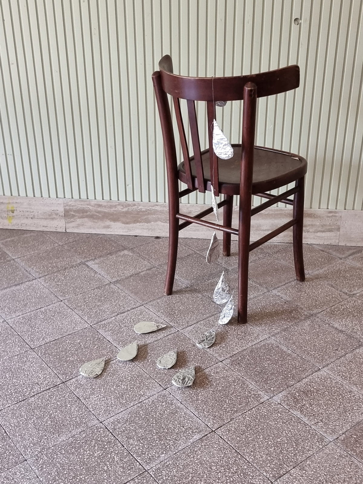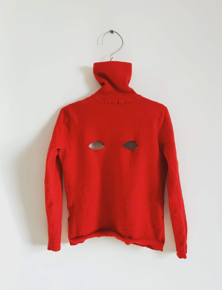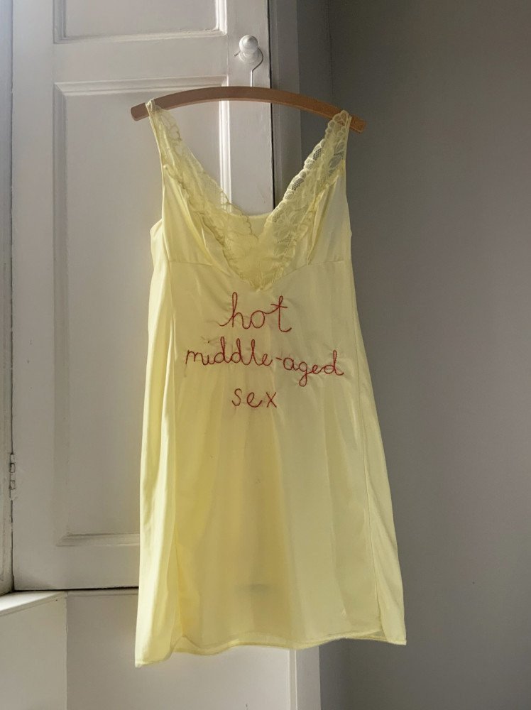 “Squashed into this small, wedge shaped space (now known as the J6 Gallery), Maddison is planning to make a dressing room full of neglected and unwanted garments, embellished with short messages of longing, loneliness and despair. Not without humour, she will take us through the ruins of her recent personal life. The show will be open for 2 wintry afternoons, with cake and wine” – see, told you there would be wine…