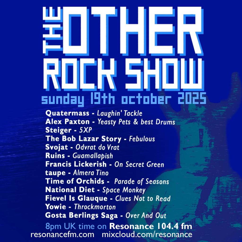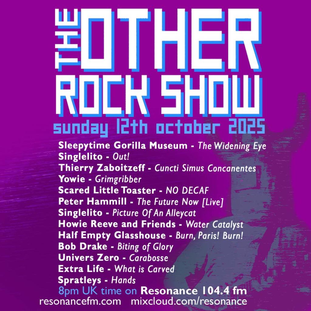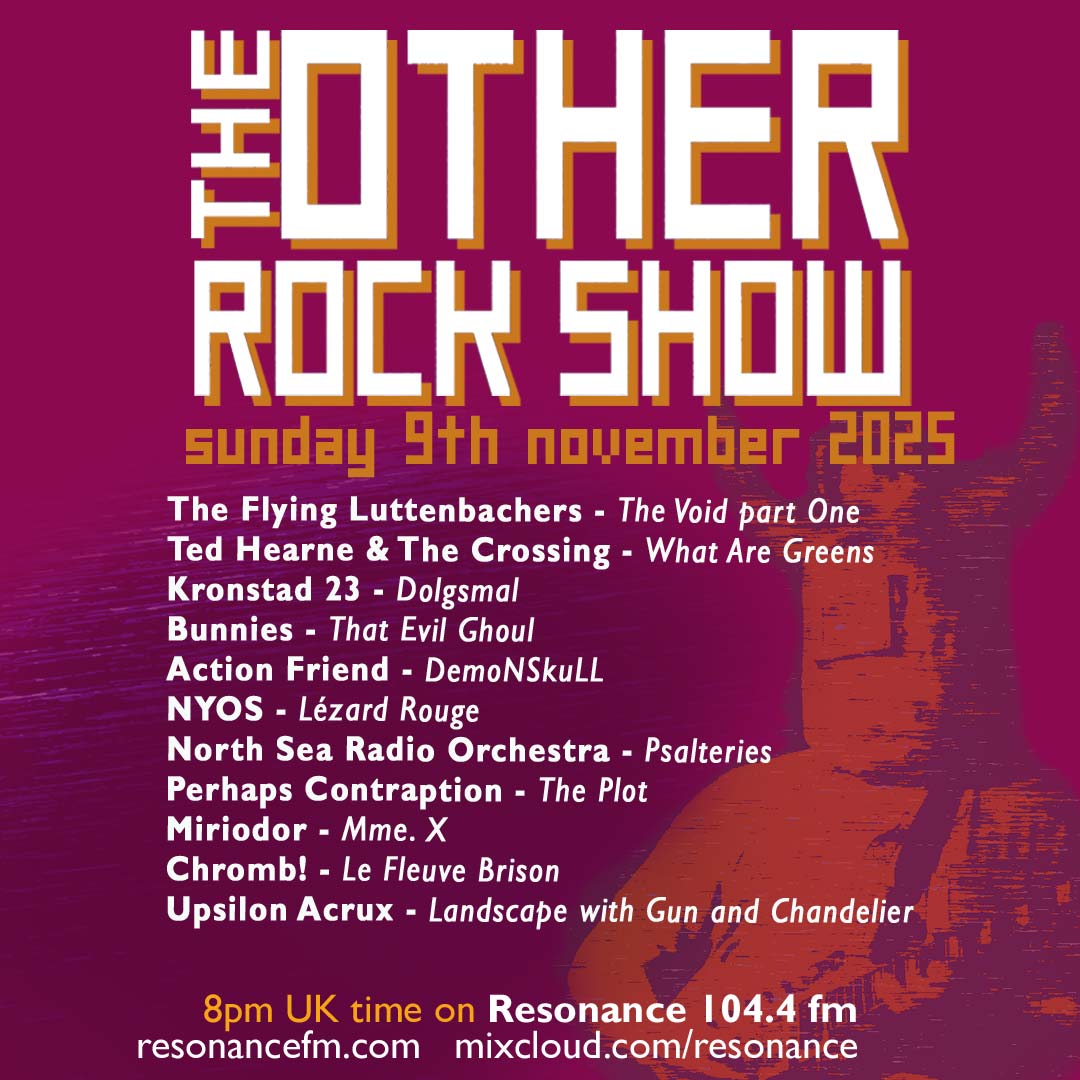 The Other Rock Show is currently on air for a season of weekly broadcasts on Sunday evennings. Usual time, usual place, 8pm on line worldwide via Resonance FM or on 104.4fm all over London on your proper oldschool radio.