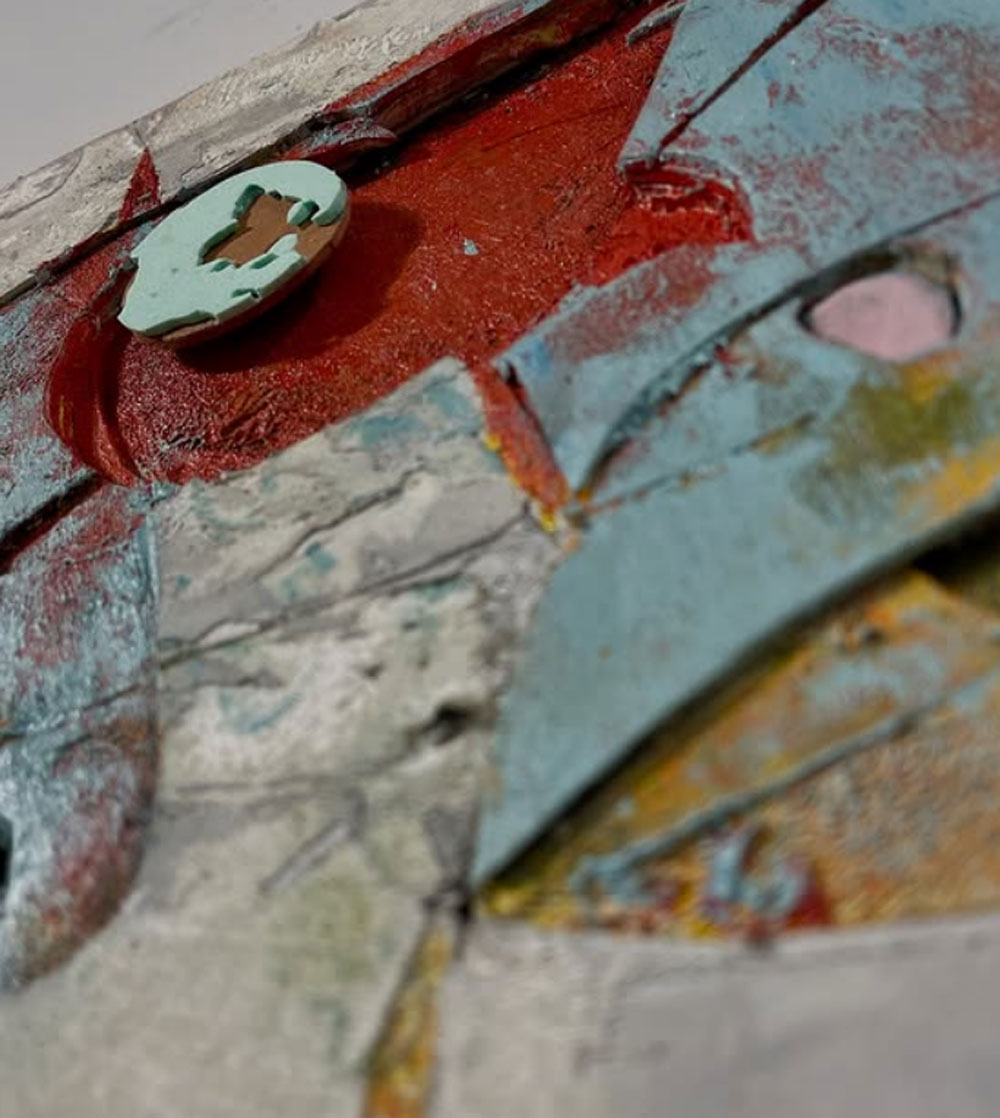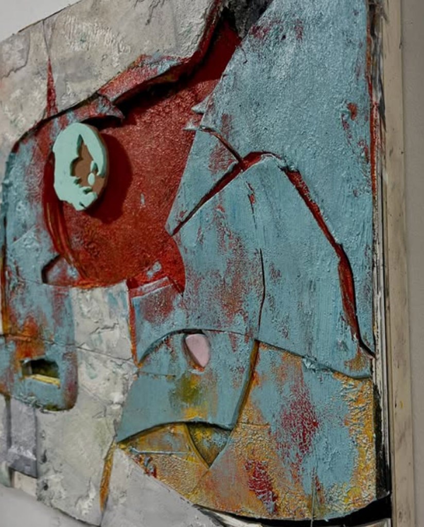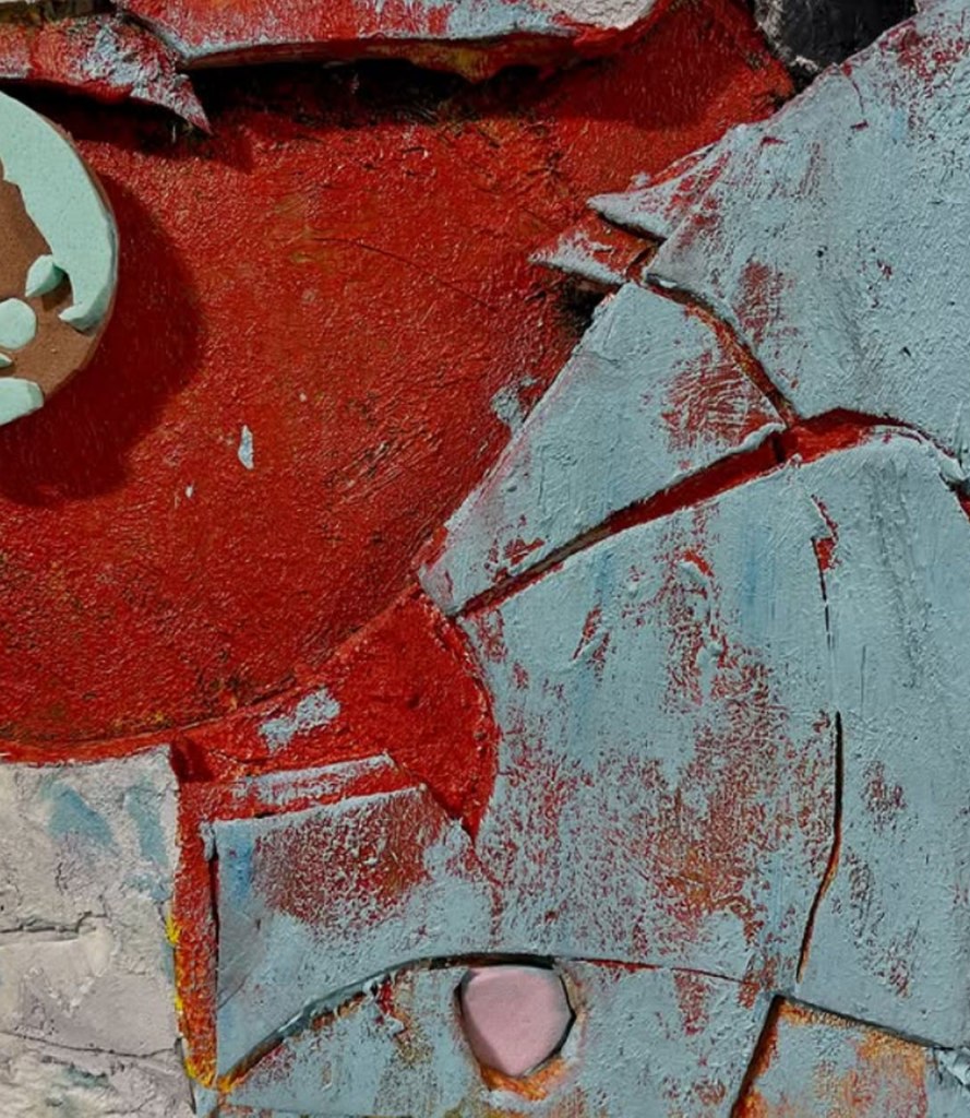 1: T.J. Ly-Donovan – a recent so far untitled piece from the artist who’s Instagram feed is always alive with intrigue. This one is a piece in oil paint and craft foam on panel. Here come some detail shots of a piece that really does, as is the case with so much of his work, excite….