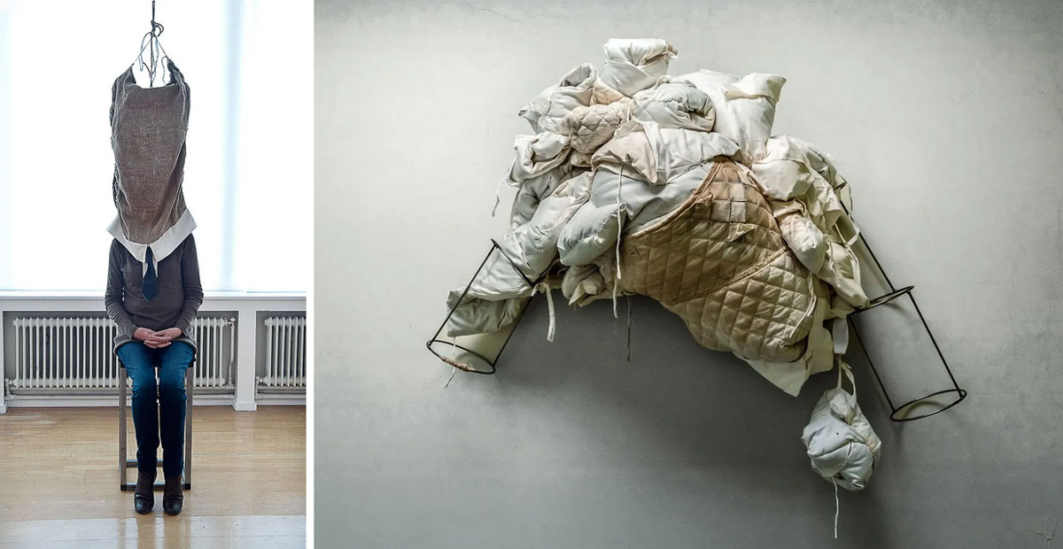 “Kari Anne Helleberg Bahri (Norway, b. 1975) graduated in Fashion Design from the National Academy of the Arts, Oslo. Moving beyond the stereotype of Norwegian minimalism, she channels a distinctly Nordic temperament – melancholic, cool, and incisive – transforming garment-making into a profound artistic language. Working with discarded clothing, fabric scraps, and textile remnants, Bahri dismantles, stitches, and reconstructs fragments from chaos, granting them renewed imagery and meaning. Through her signature use of neutral-toned textile art, she probes the collective conditions of contemporary society – restriction, expectation, order, and isolation – shaping a practice that is immediately recognisable. Her works have been exhibited at Kunstmuseet NordTrøndelag (Norway) and Danubiana Meulensteen Art Museum, the Socle du Monde Biennale (Denmark), and are in the permanent collections of Kongsberg Municipality and Den Norske Husflidforening.