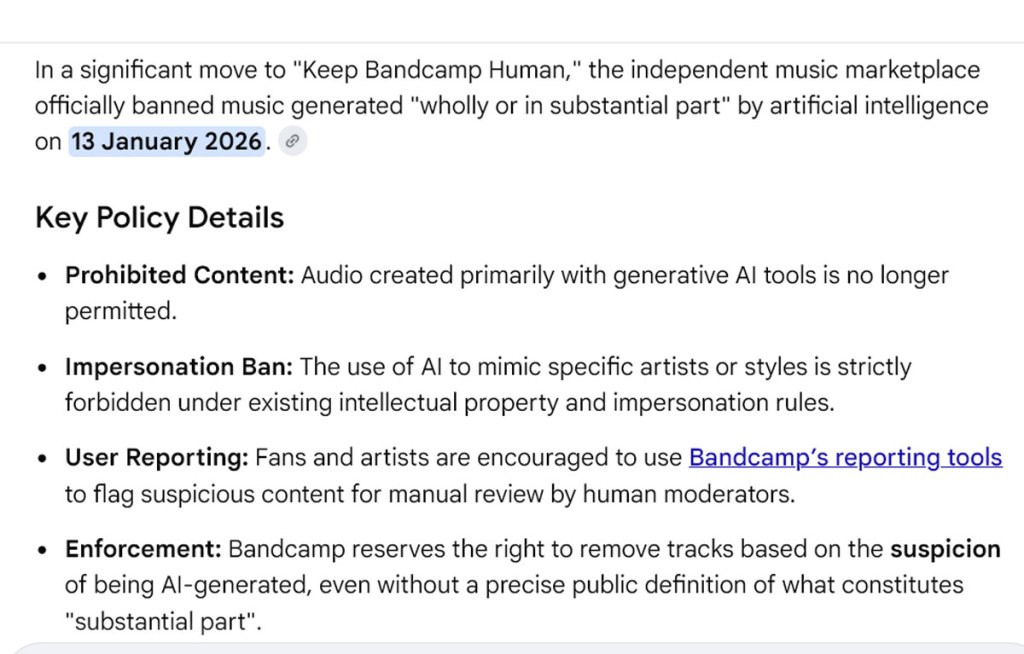 Here’s the actual Bandcamp statement. And yes, there is a more serious debate to be had about AI in music and creatively using it as a tool but yes, ban those awful AI generate things like that abomination that went to number one in the Country Music charts recently…
